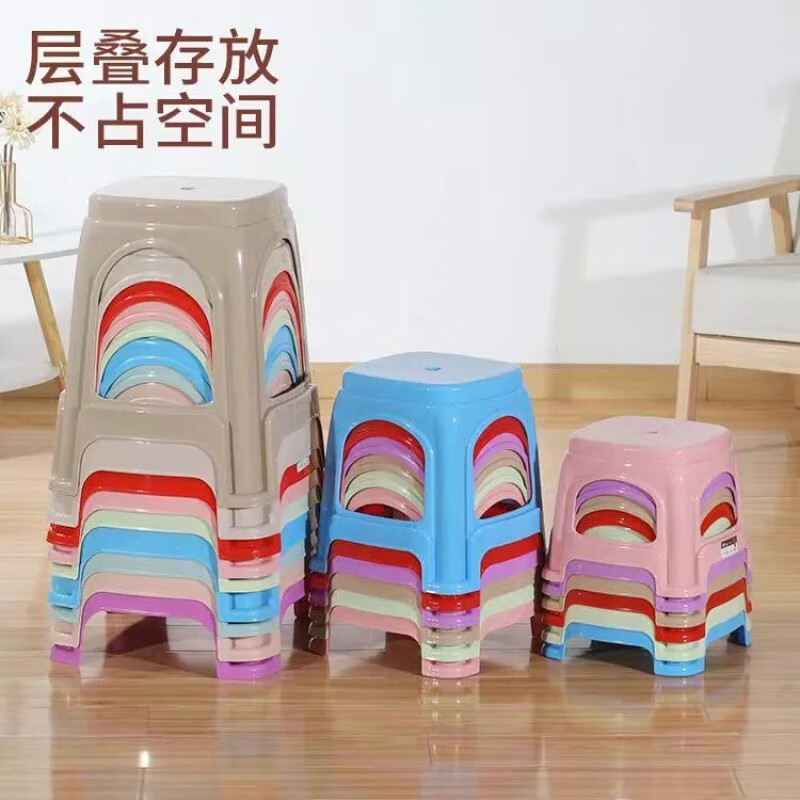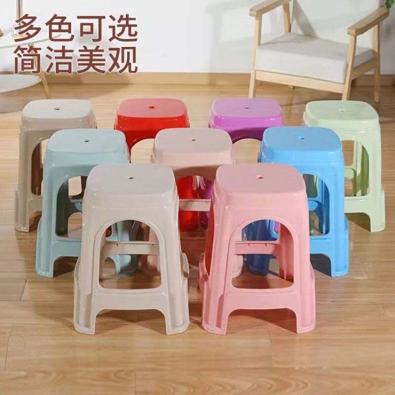 凳子塑料凳子加高高凳子凳子时尚耐用家用超厚橙子特厚加厚 大号带盖【46cm+防滑垫】卡其色 10个装