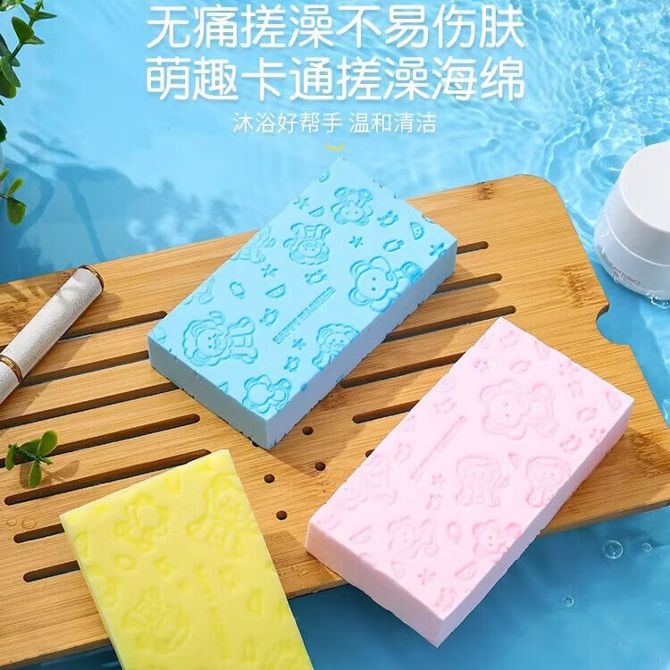 搓澡巾儿童后背搓澡大人宝宝浴擦搓灰搓泥强力海绵洗澡巾搓背 大号【粉色*2+绿色+蓝色】