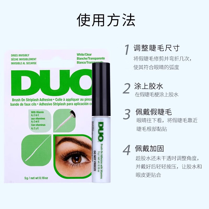DUO美国DUO假睫毛胶水温和易粘原装进口持久透明无痕防过敏防水速干 美国正品DUO绿管带刷头 5g