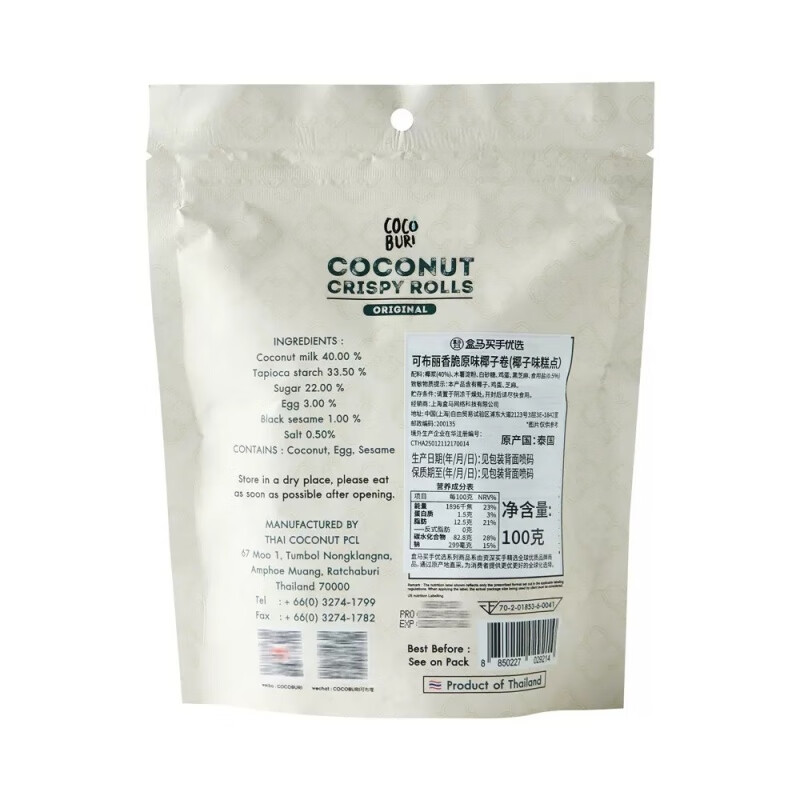 可局COCOBURI/可布丽泰国进口椰子卷100G椰奶蛋酥卷休闲小吃零食 COCOBURI/可布丽泰国进口椰子卷1
