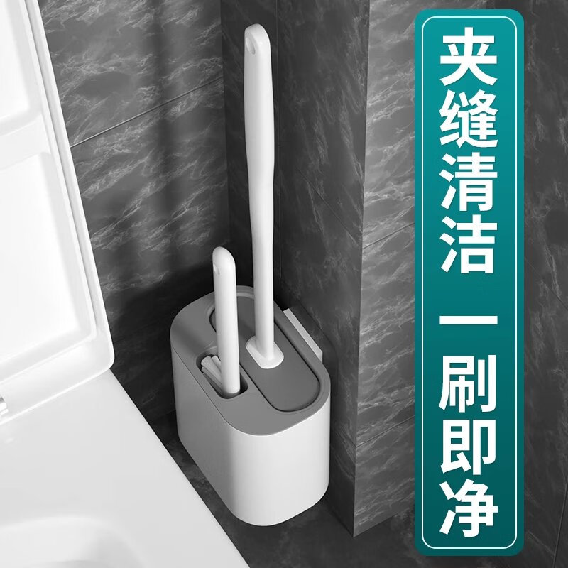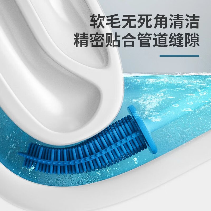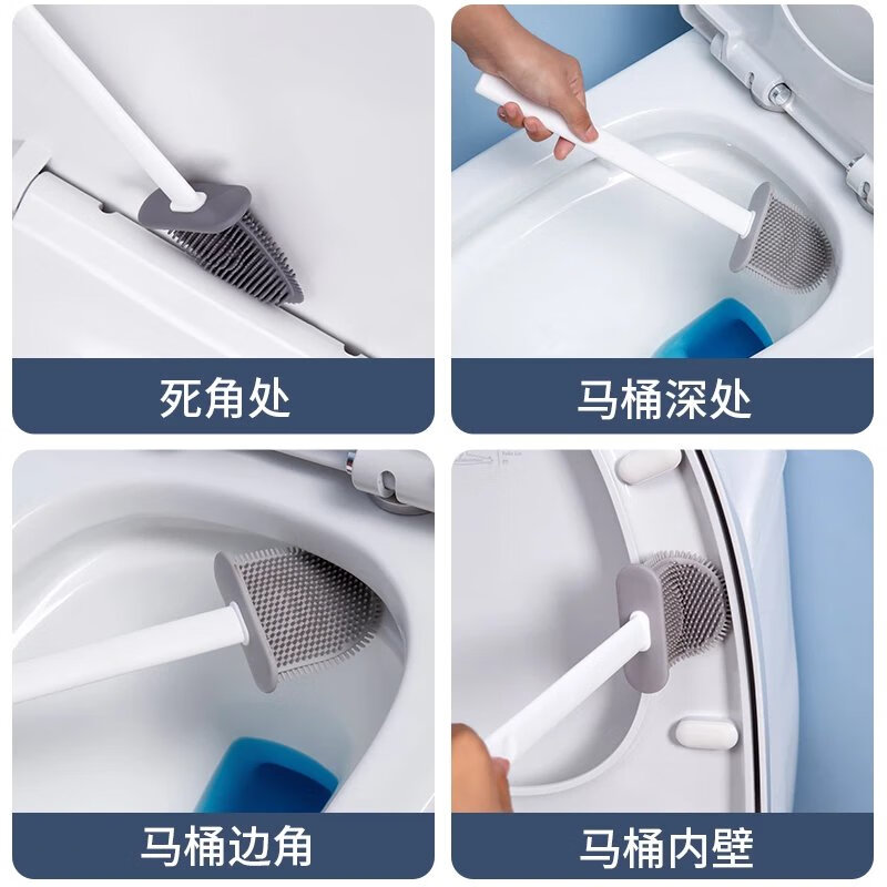 【精选】无死角马桶刷家用卫生间壁挂式套装洗厕所刷子清洁硅 升级款双刷-蓝色 落地/壁挂两用