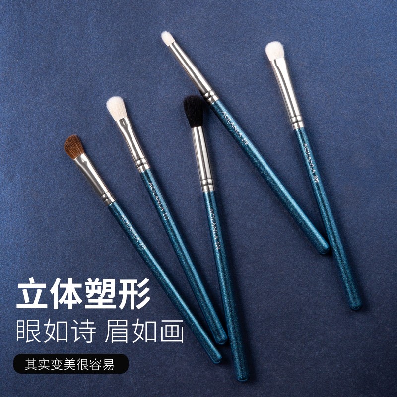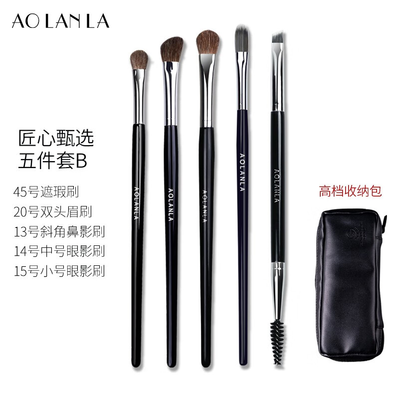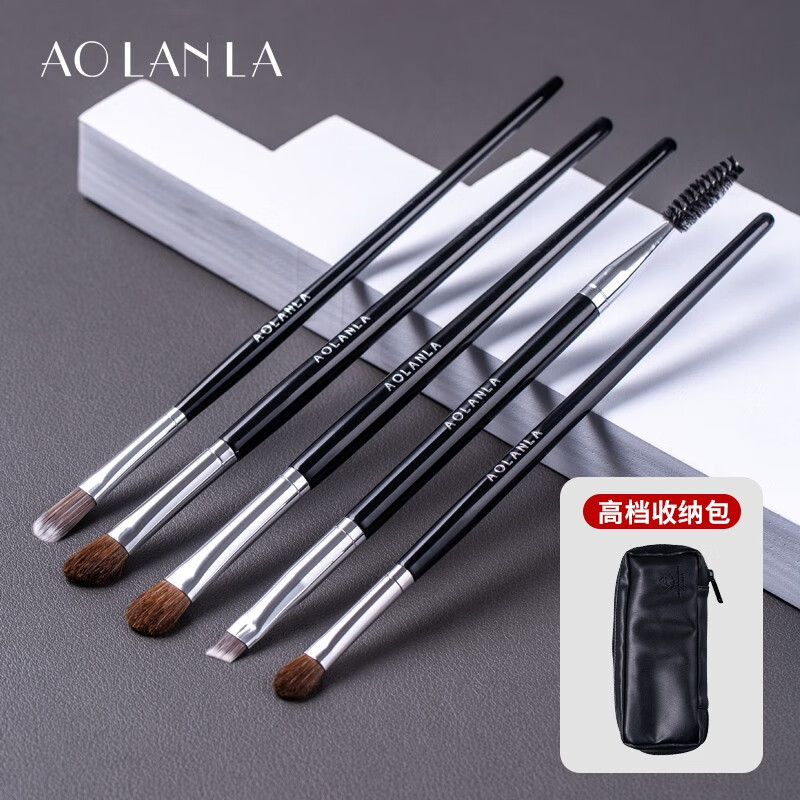 AOLANLA 眼影刷套装斜角鼻影晕染细节刷动物毛羊毛马毛5支装全套眼部化妆刷美妆工具带便携收纳刷包 5支黑色眼影刷套装+刷包