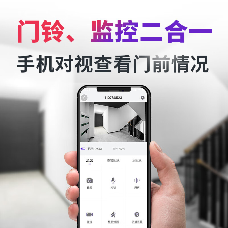 神眸可视门铃摄像头监控智能门铃无线wifi家用电子门铃猫眼1080P高清夜视手机远程查看视频通话免打孔 送64G卡+7天云存储-高清夜视大广角 防拆报警、超长续航、语音对讲