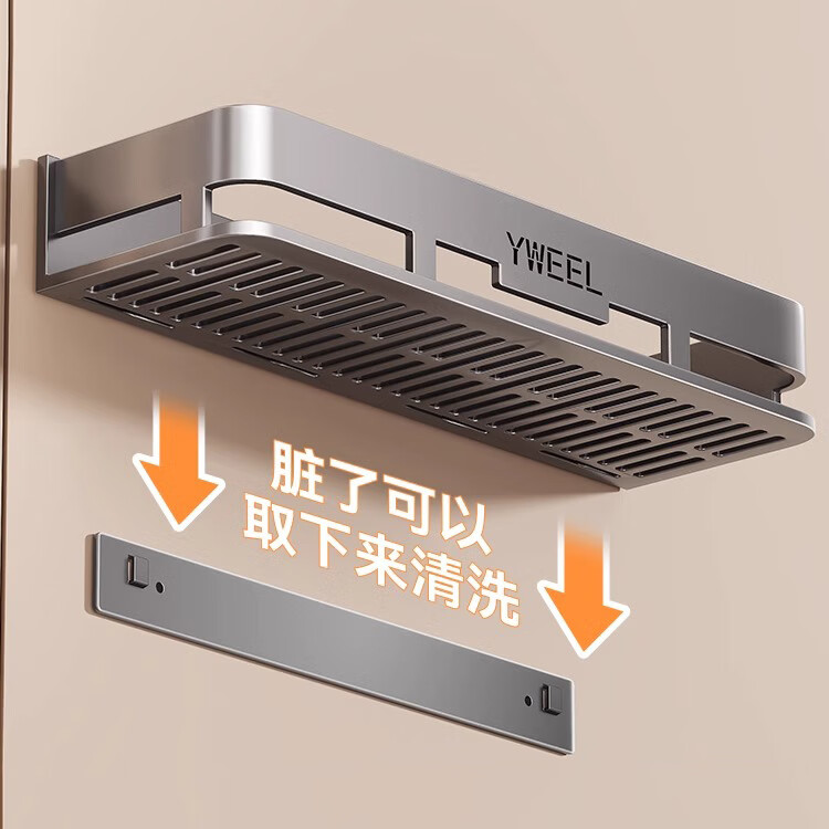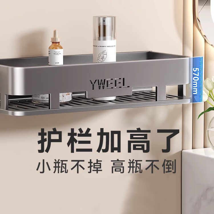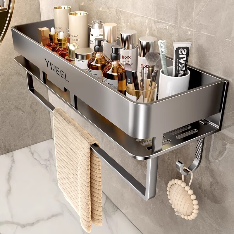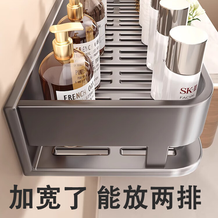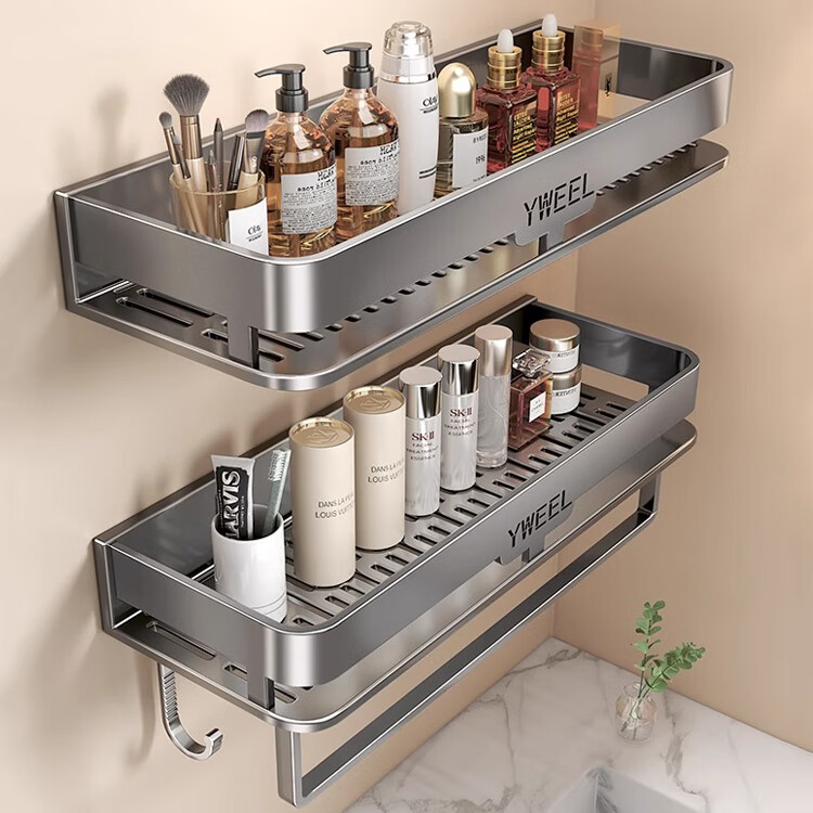 慕质加高卫生间置物架洗漱台免打孔浴室壁挂式阳台墙上洗手间收纳架子 太空铝50cm枪灰带钩带杆-双层