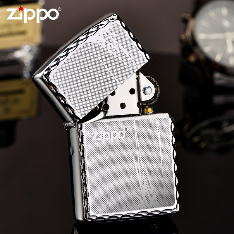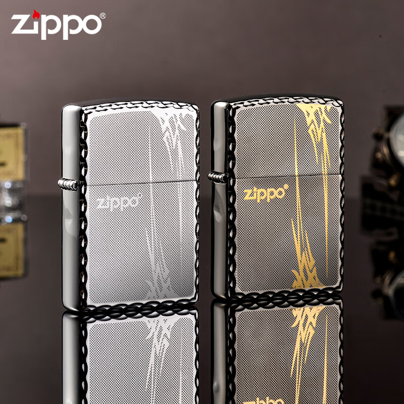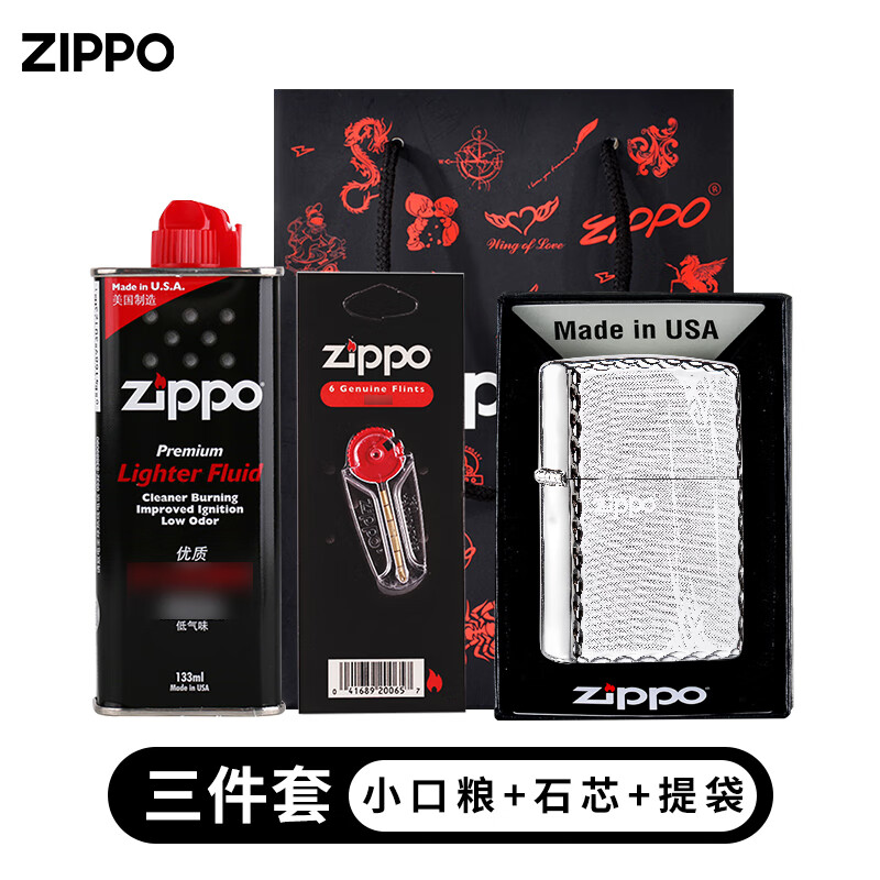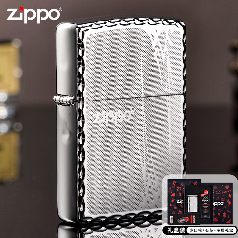 ZIPPO煤油打火机 男士礼品礼物原装进口之宝日韩版谦谦君子兰花套装 银色 含油礼盒套装