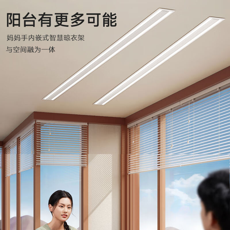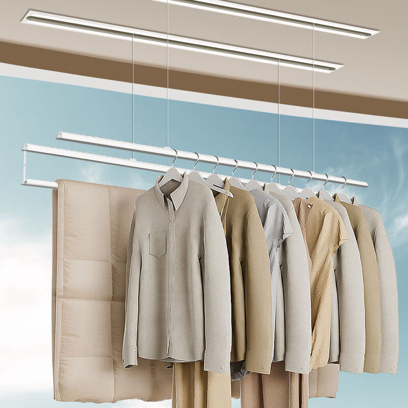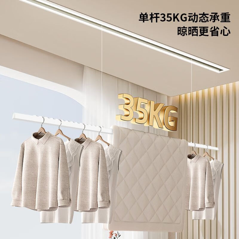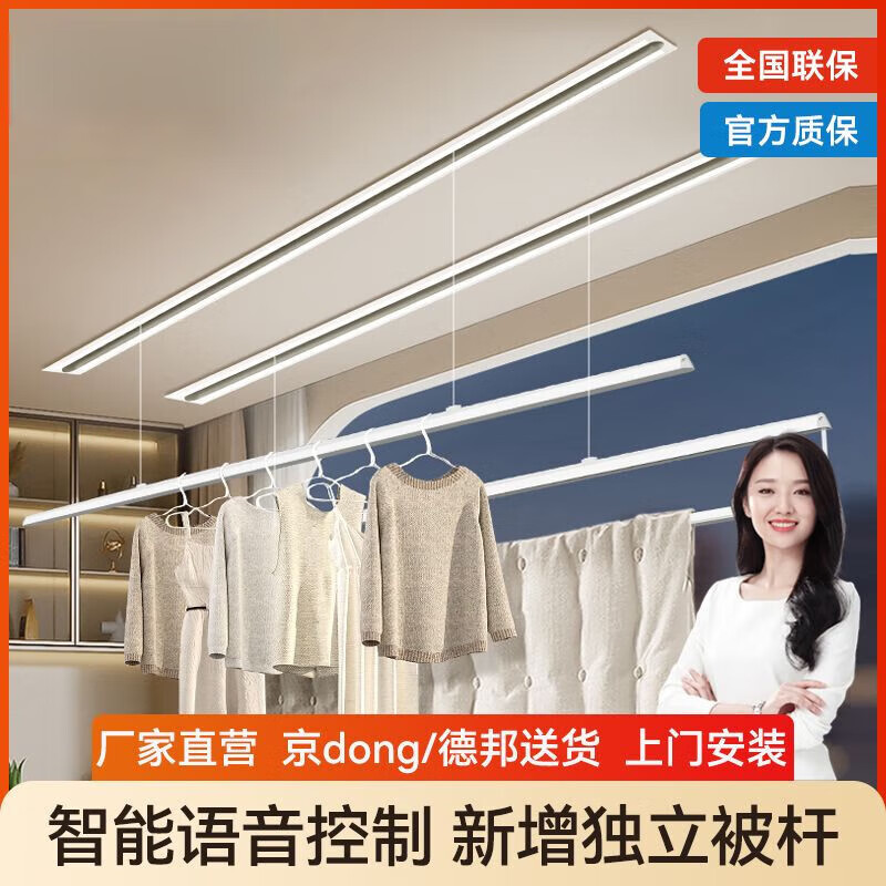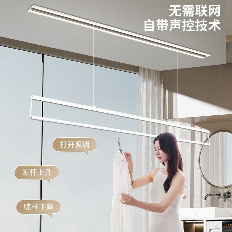OQB北一隐形晾衣架嵌入式声控电动衣架全自动升降式智能遥控隐藏杆 双杆白(无安装服务) 2.0米照明离线语音声控
