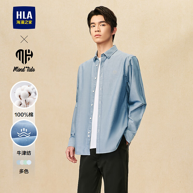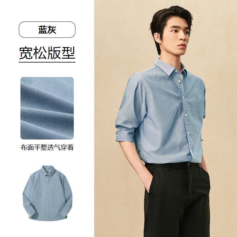 海澜之家(HLA)长袖衬衫男秋季24新款亦心即为牛津纺衬衣男 蓝灰94 175/92A M推荐137~148斤