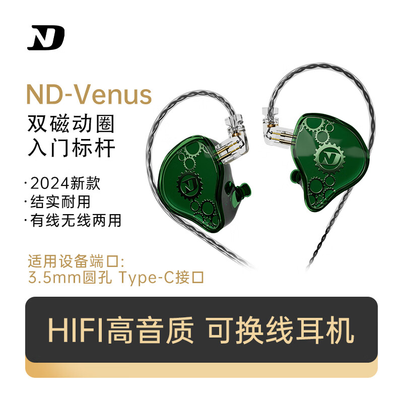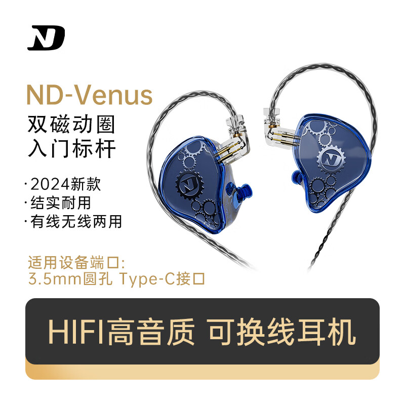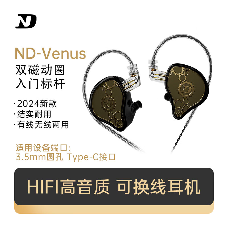 ND Venus入耳式耳机有线 HIFI高音质音乐监听耳返游戏耳塞 舞台直播动圈0.78双插针 挂耳式耳机 银色 【Type-c接口带麦款】