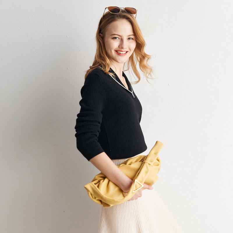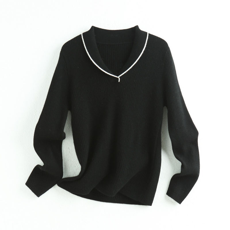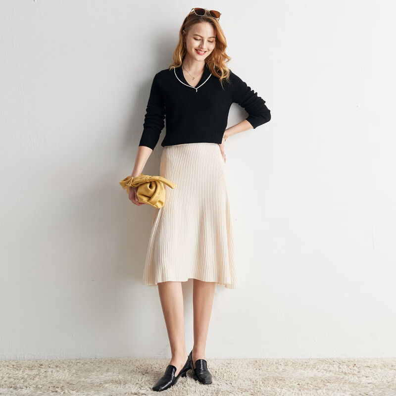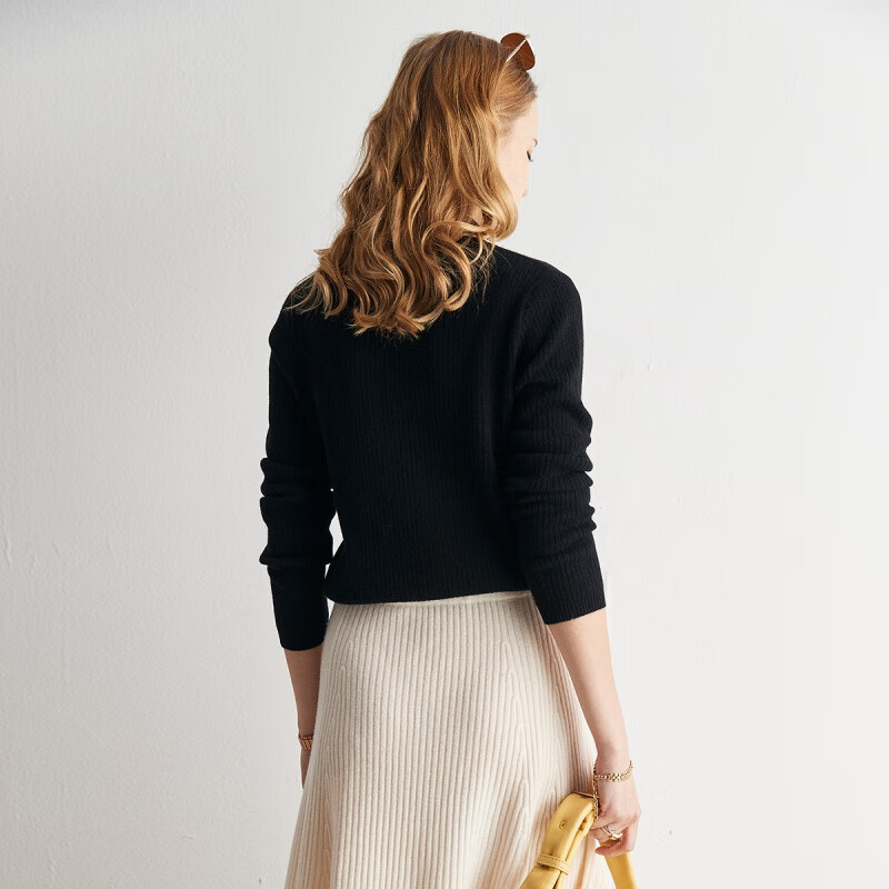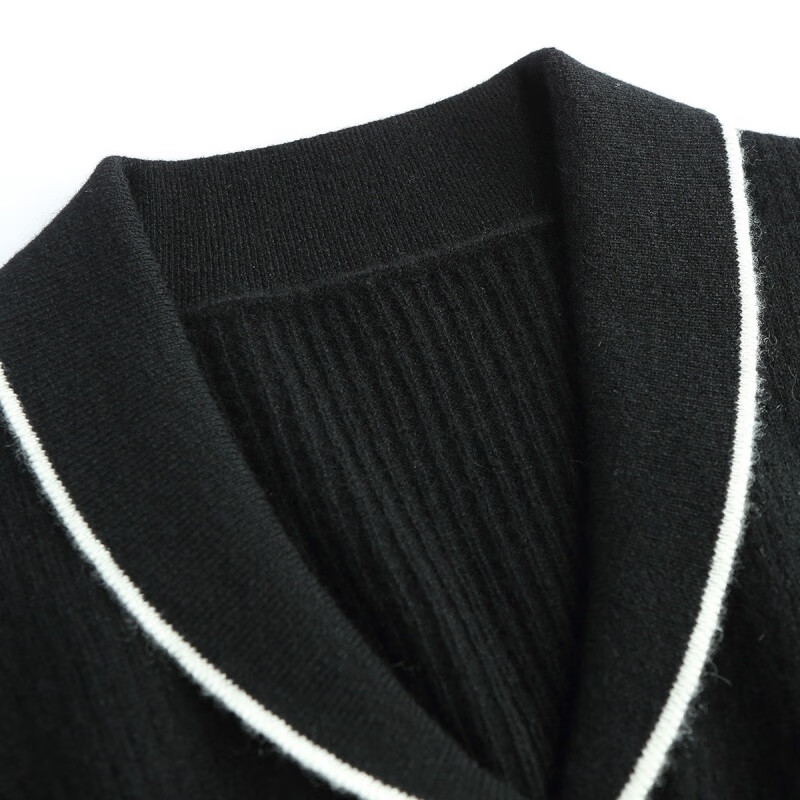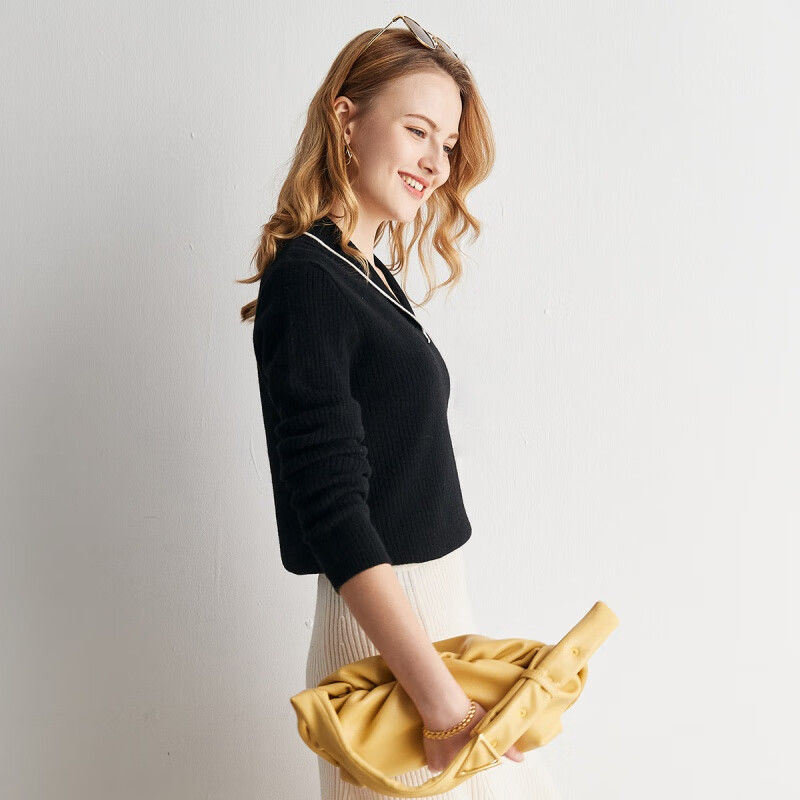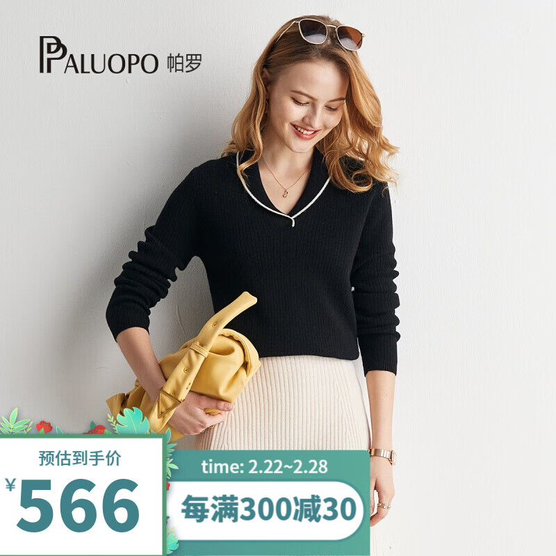 帕罗(PALUOPO) 【青果领设计】山羊绒秋冬新品撞色简约软糯羊绒衫女 20075 黑 105