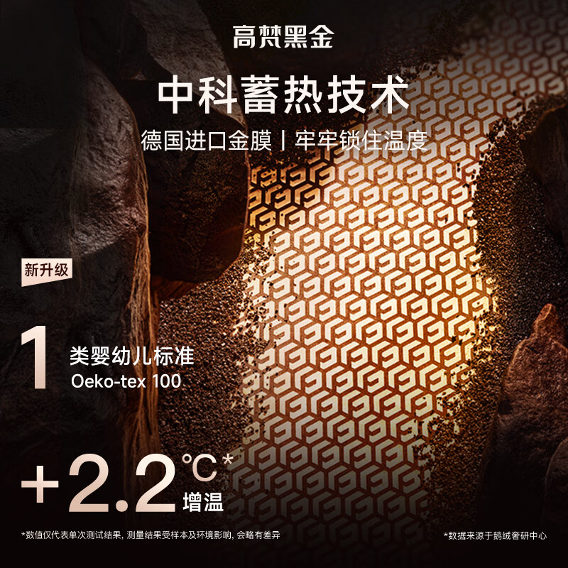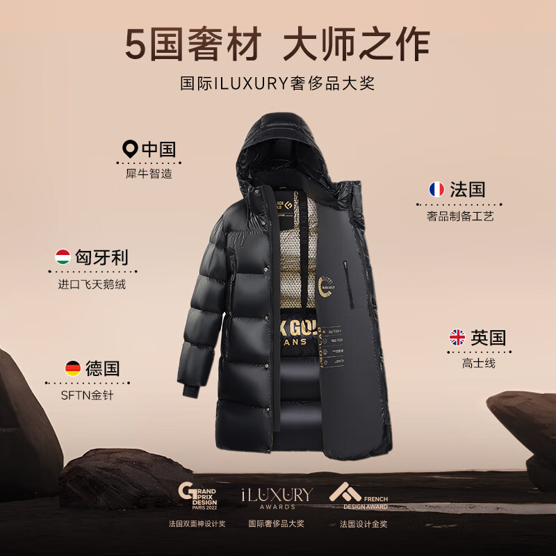 高梵黑金鹅绒服先锋3.0亮面六格羽绒服男女同款冬季厚外套 黑色 XL