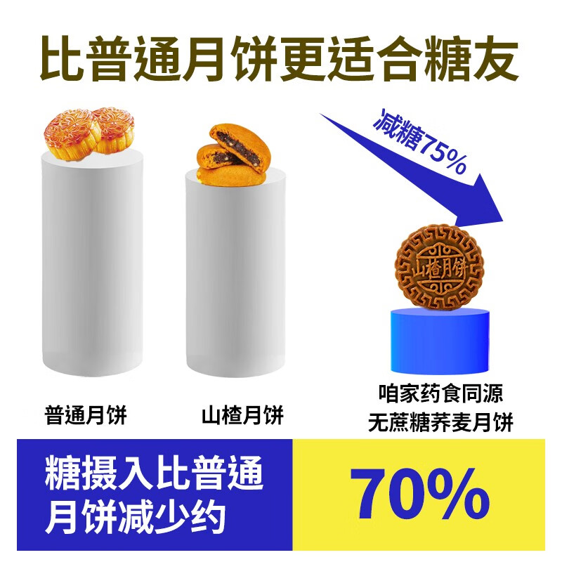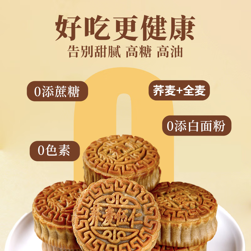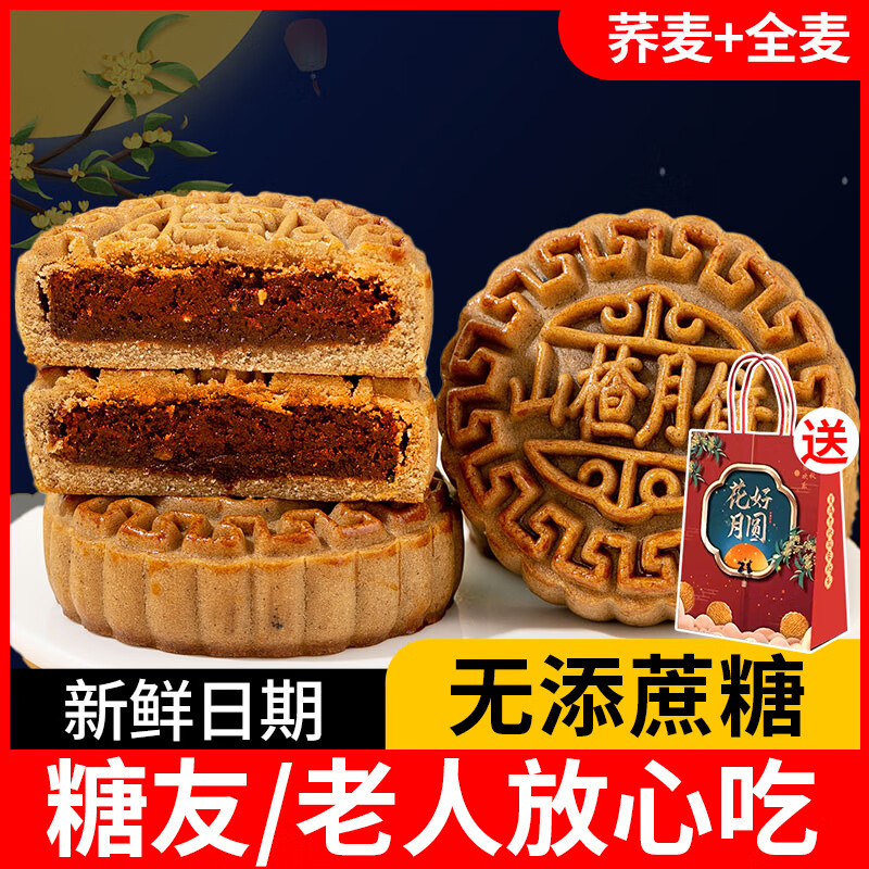 梦唤无蔗糖荞麦月饼乔麦粗粮山楂酸甜水果无糖精糖尿人专用好吃木糖醇 五仁馅 450g 6枚装 荞麦6枚 断糖解馋