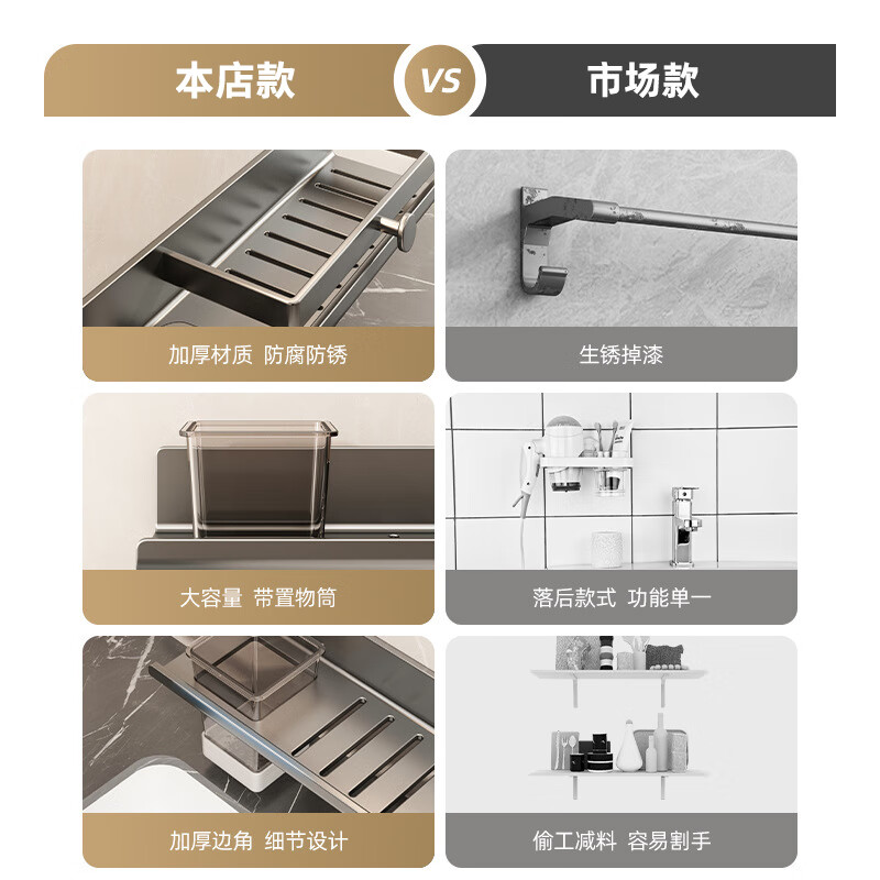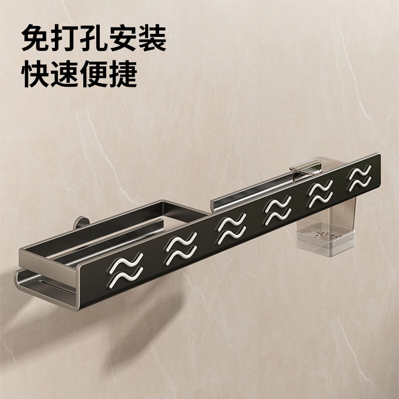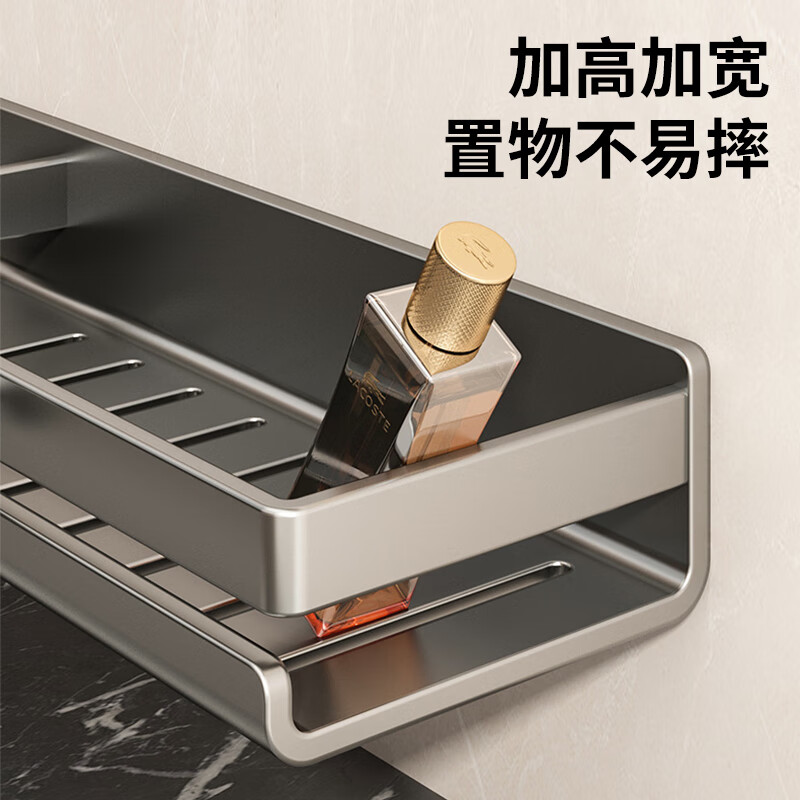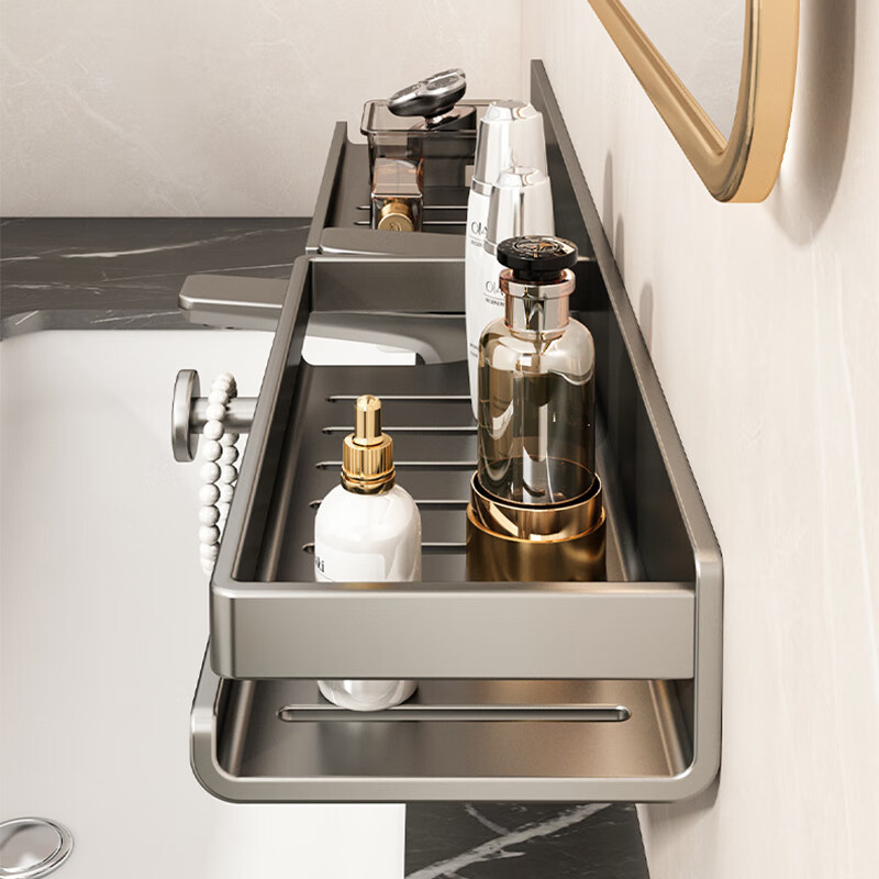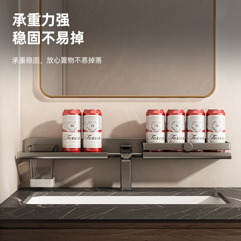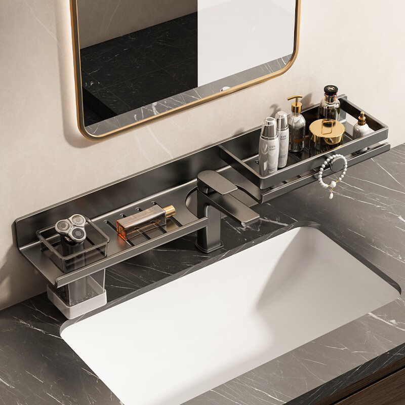 慕质镜前卫生间置物架厕所水龙头洗手台盆洗漱台壁挂式免打孔浴室架子 带杯龙头置物架80CM-枪灰