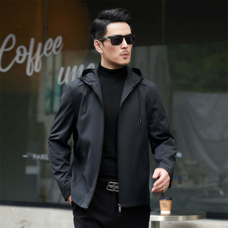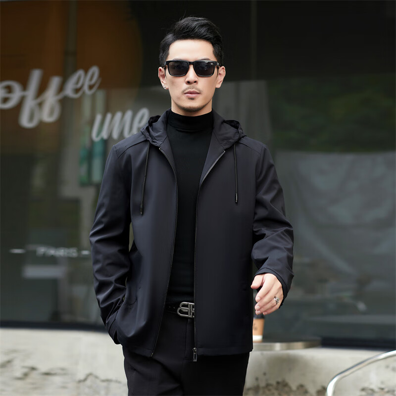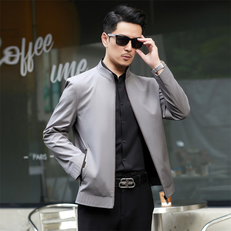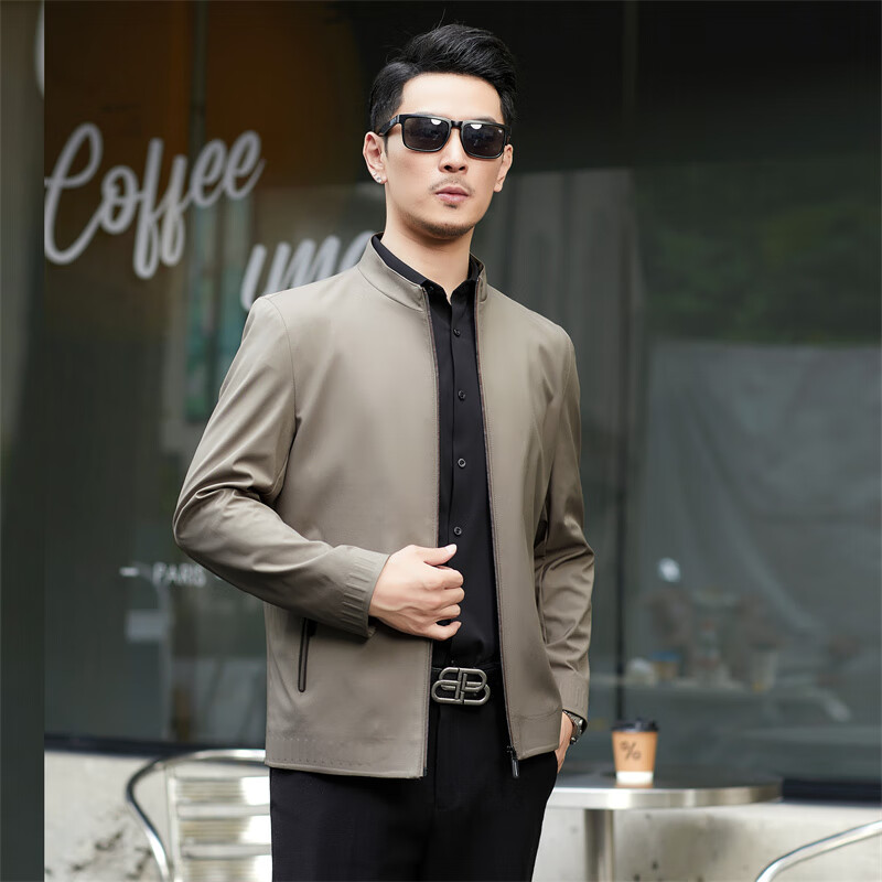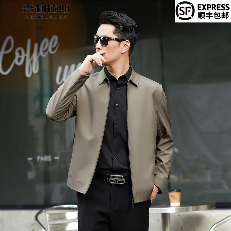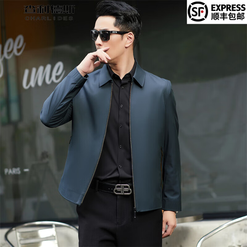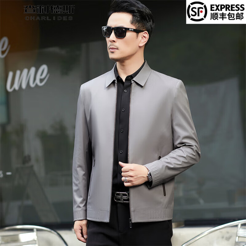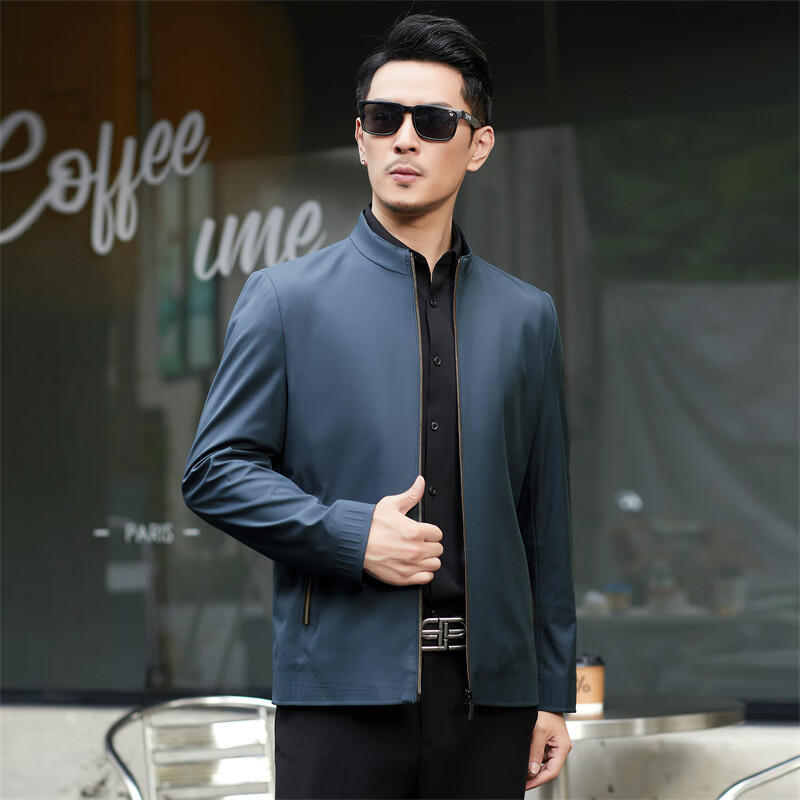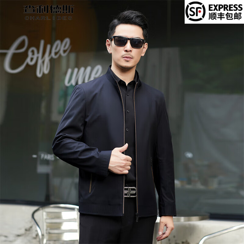 查利德斯秋冬新款夹克男纯色翻领上衣中青年商务休闲领导干部免烫外套男 1133藏青色【拉链翻领款】 180码【建议135-150斤】
