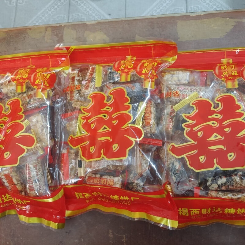 可钦揭西 陆河特产 揭西财达糖饼厂花生黑芝麻花生豆条花生条独立 混搭财达喜糖430克1包X4