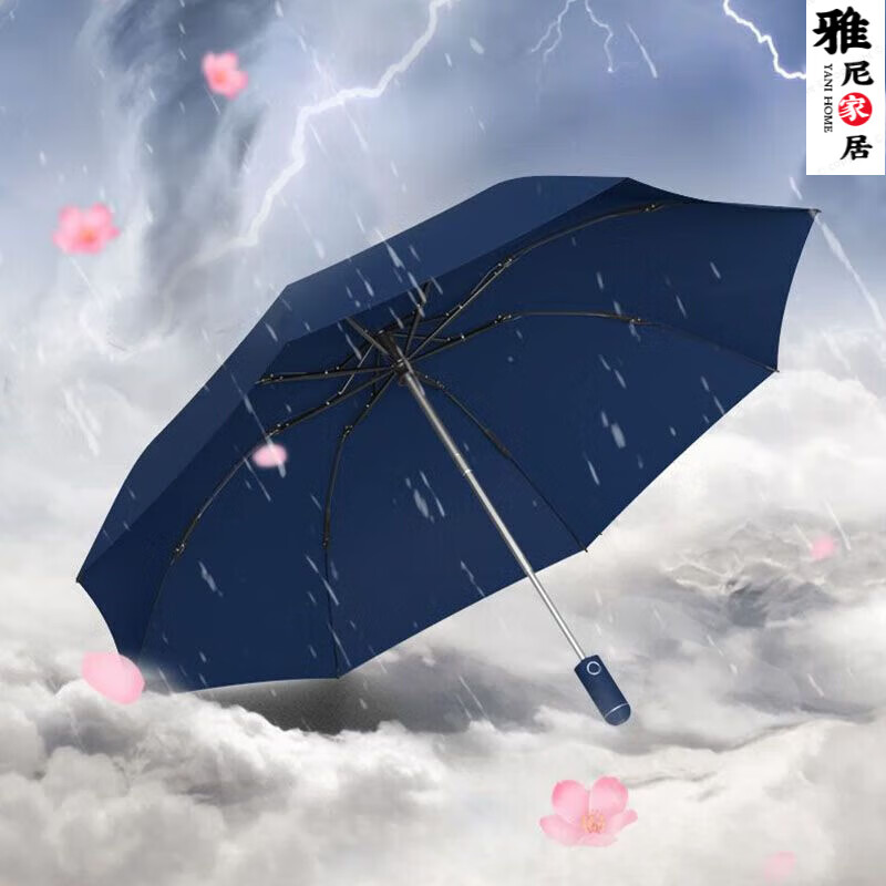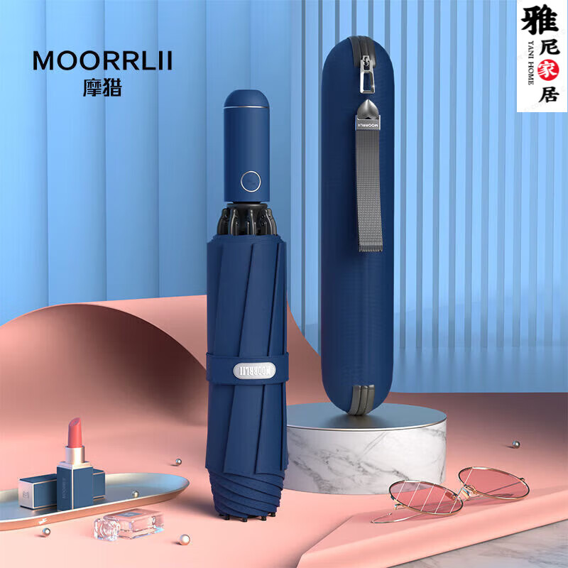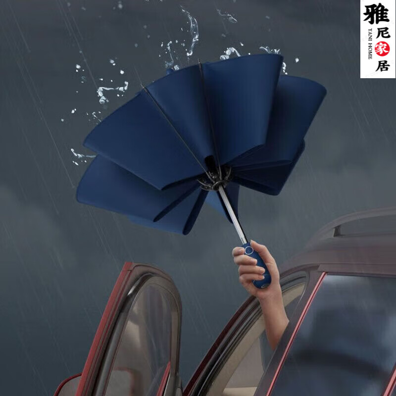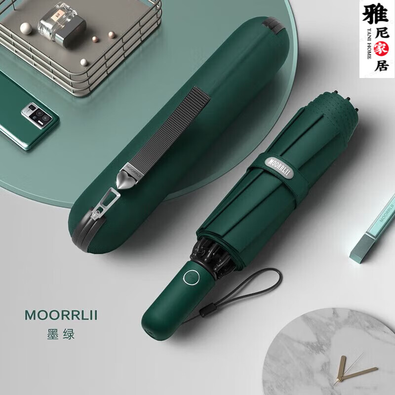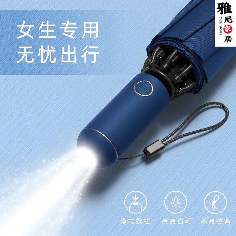 全自动雨伞一键全收电动 智能摩猎反向折叠伞森系自适用于小米SU7 防回弹LED反向伞素雅