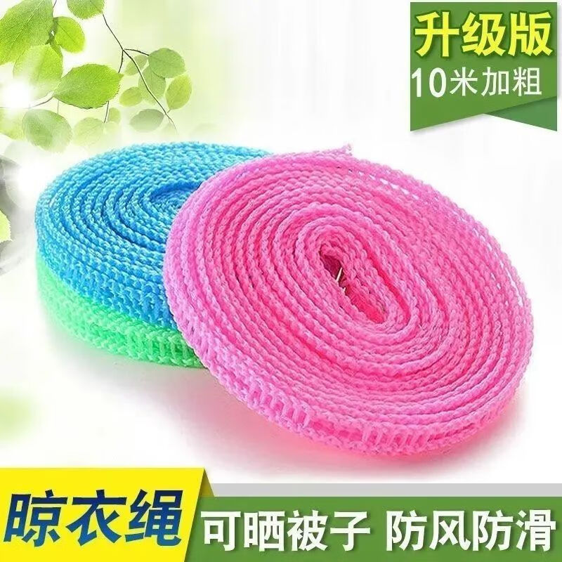 【甄选厂家】加粗晾衣绳室内户外免打孔凉衣绳防风防滑晾衣服绳子 耐磨耐用【2条10米】+4铁钩