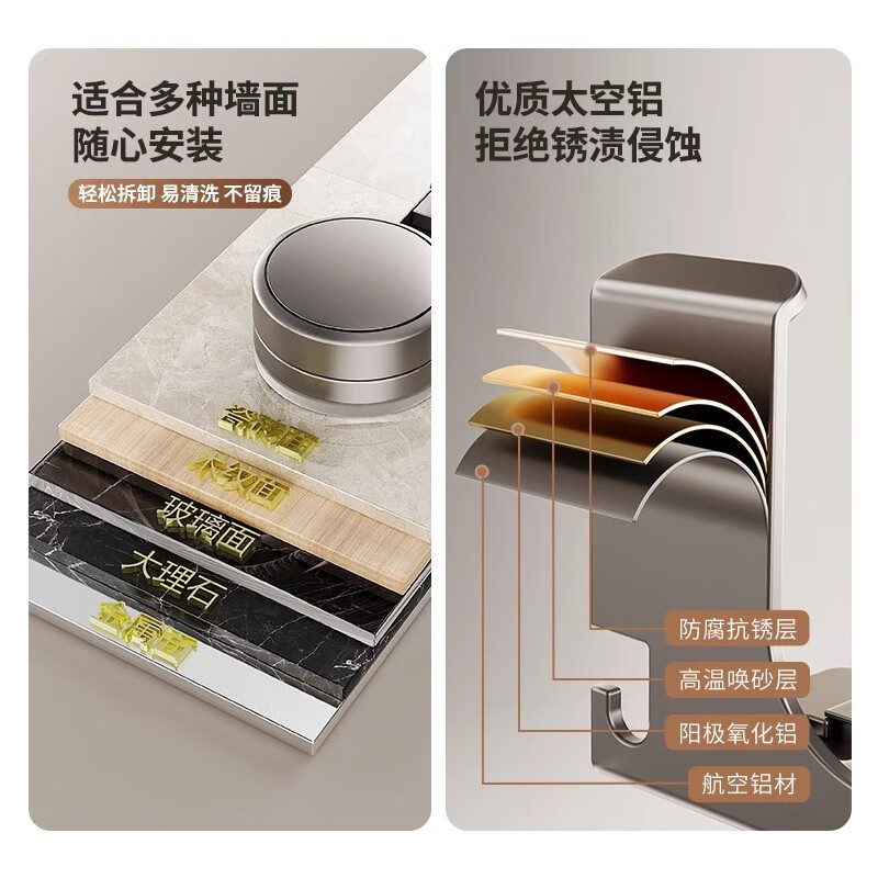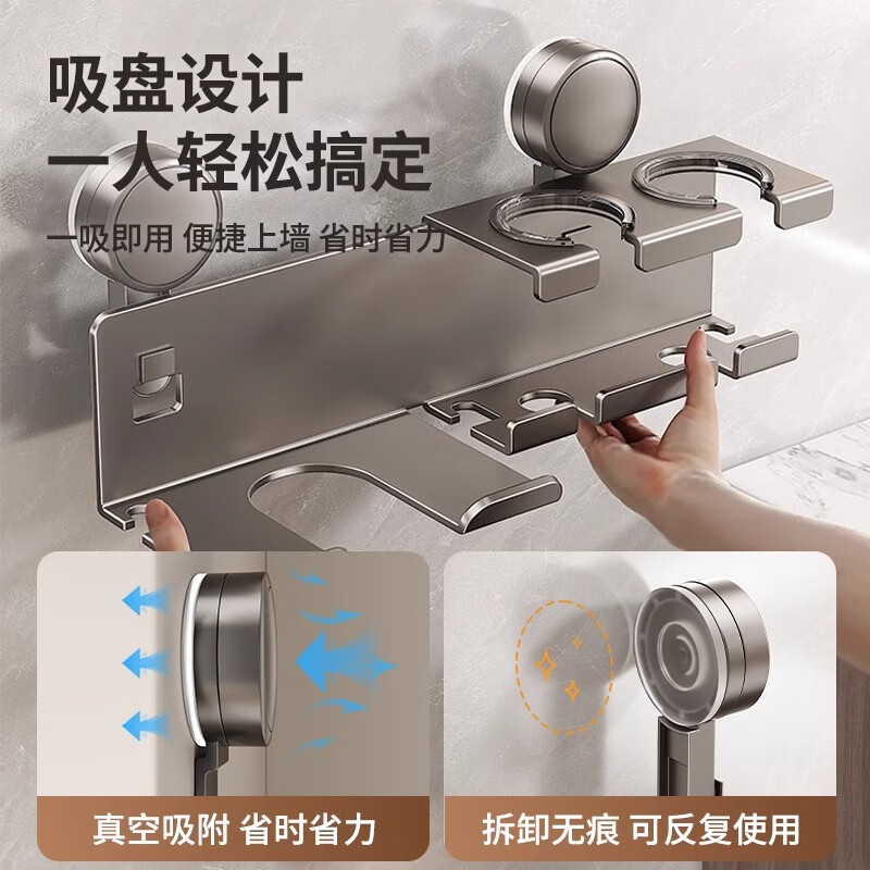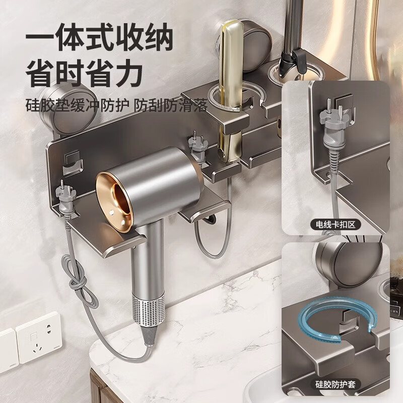 慕质浴室吸盘电吹风机置物架卫生间免打孔一体收纳壁挂夹板卷发棒支架 【枪灰】双筒带置物