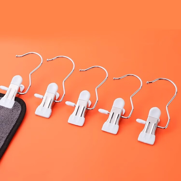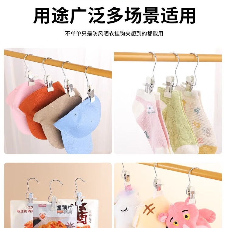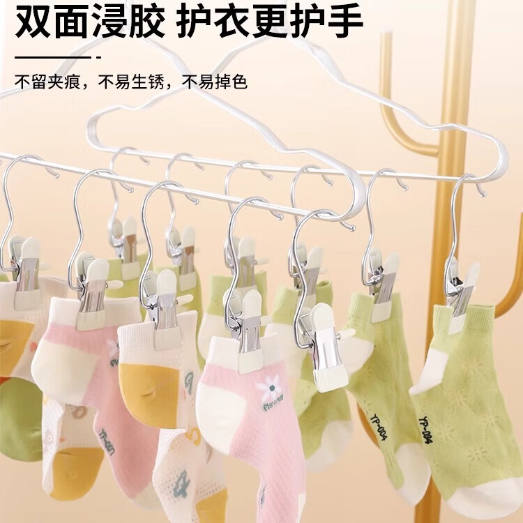 多功能带挂钩夹子金属不锈钢帽子裙子裤夹无痕晾衣夹单个便携小夹 天空蓝【软胶无痕】 2个