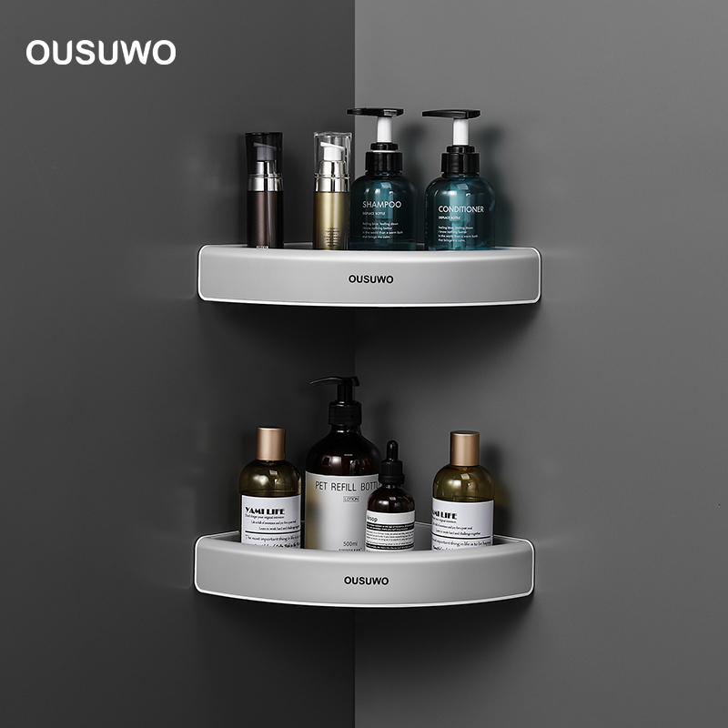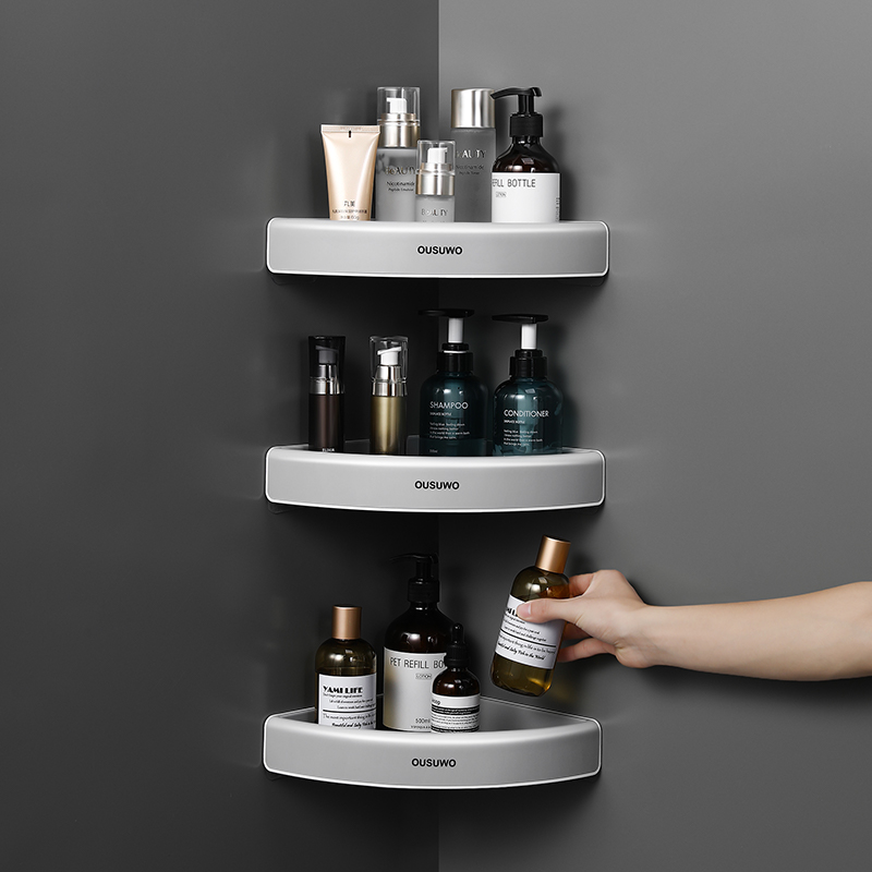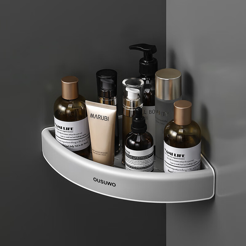 麦扣(MAIKOU)卫生间置物架浴室厕所免打孔三角收纳架洗手间墙上化妆品收纳 百搭灰【墙角款】 2个装