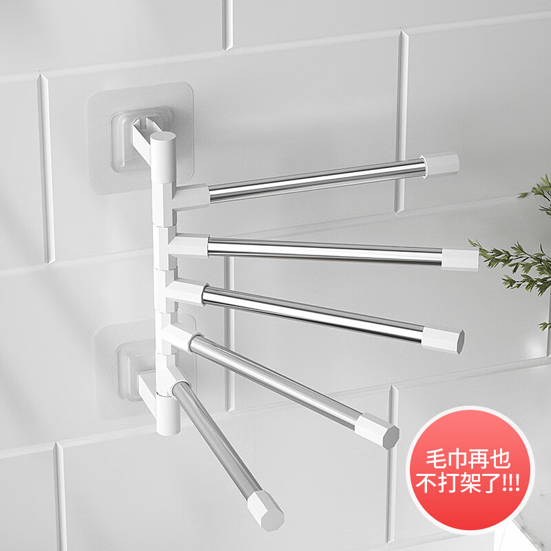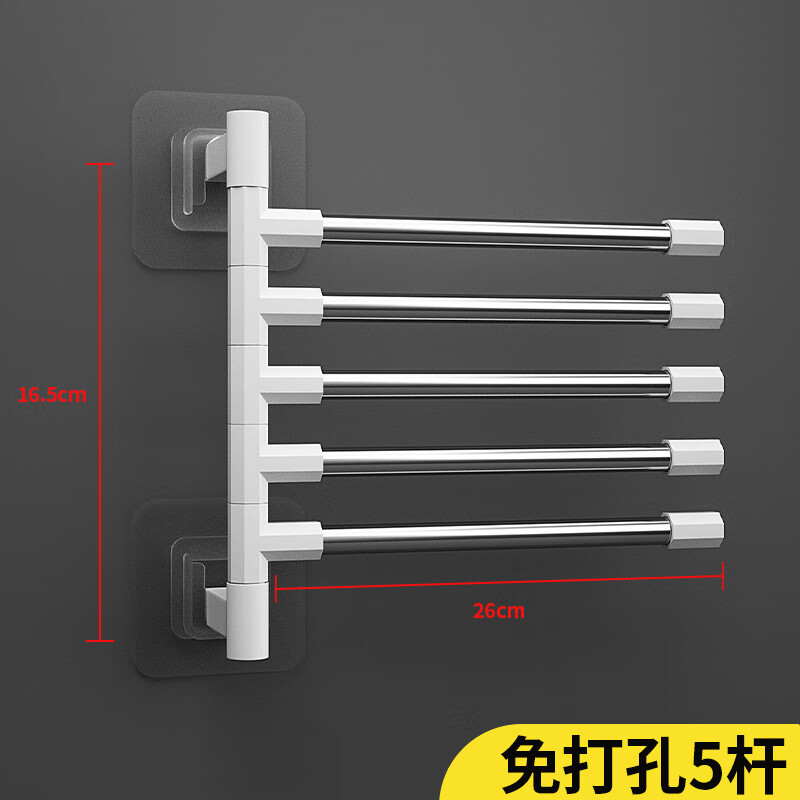 净安美卫生间旋转毛巾架免打孔不锈钢多杆浴室卫生间挂毛巾架吸盘毛巾架 免打孔5杆一个装