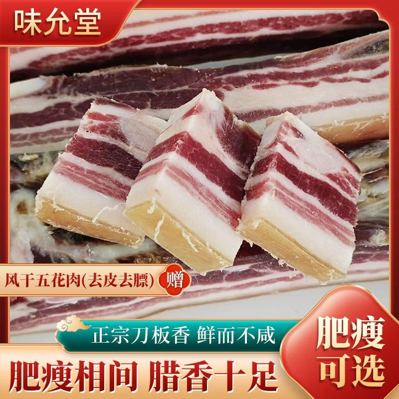可钦正宗黄山特产刀板香安徽南风咸肉风干五花肉土猪肉腌制腊肉 750g 偏瘦