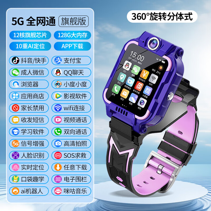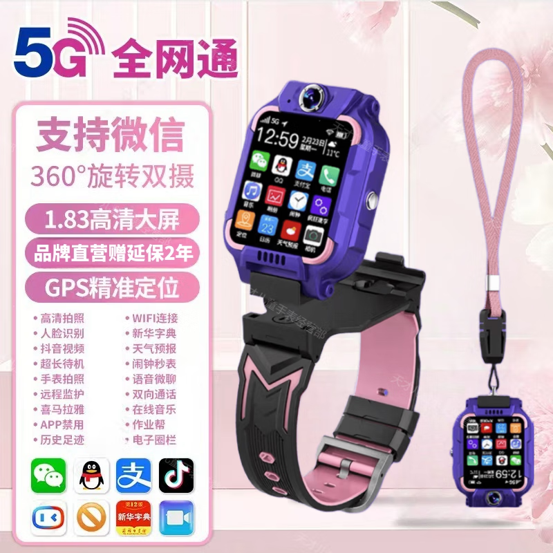 小天才学霸儿童电话手表智能防水定位视频插卡儿童手表6-12岁学生少年z8z7 紫128G+学生微信QQ+学习软件+支 中国大陆