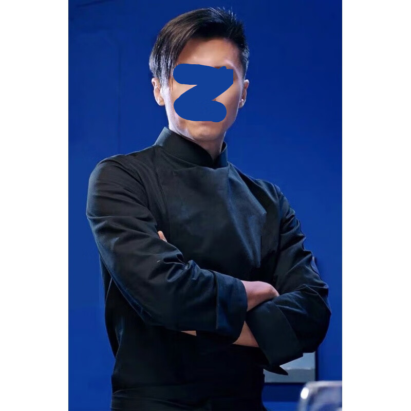 俙兹高端餐厅酒店厨师长高级工作服专用工装锋味同款厨师服男长短袖 黑色长袖+黑色围裙 2XL