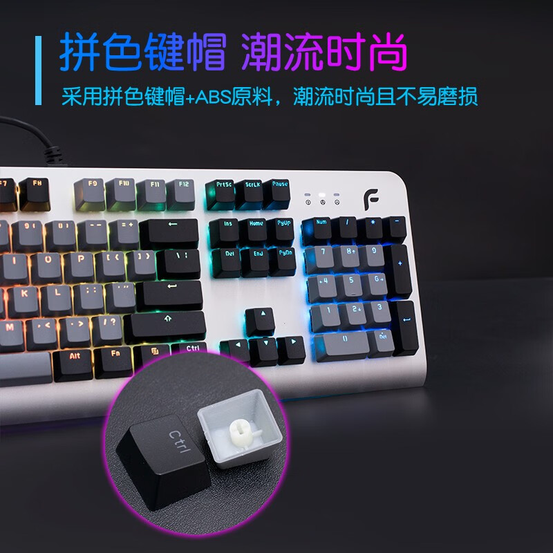 迪摩(DEARMO)F31机械键盘有线键盘游戏键盘104键RGB背光键盘吃鸡键盘电脑键盘 太空银 青轴