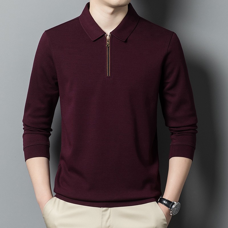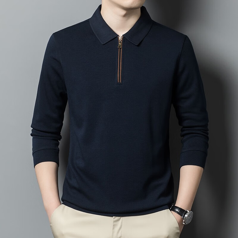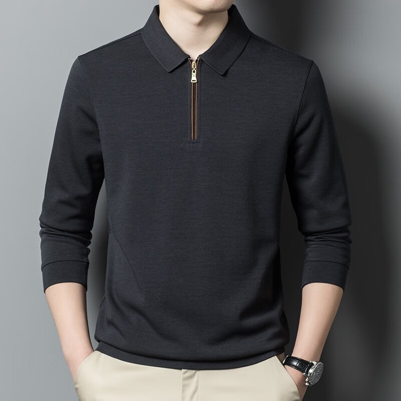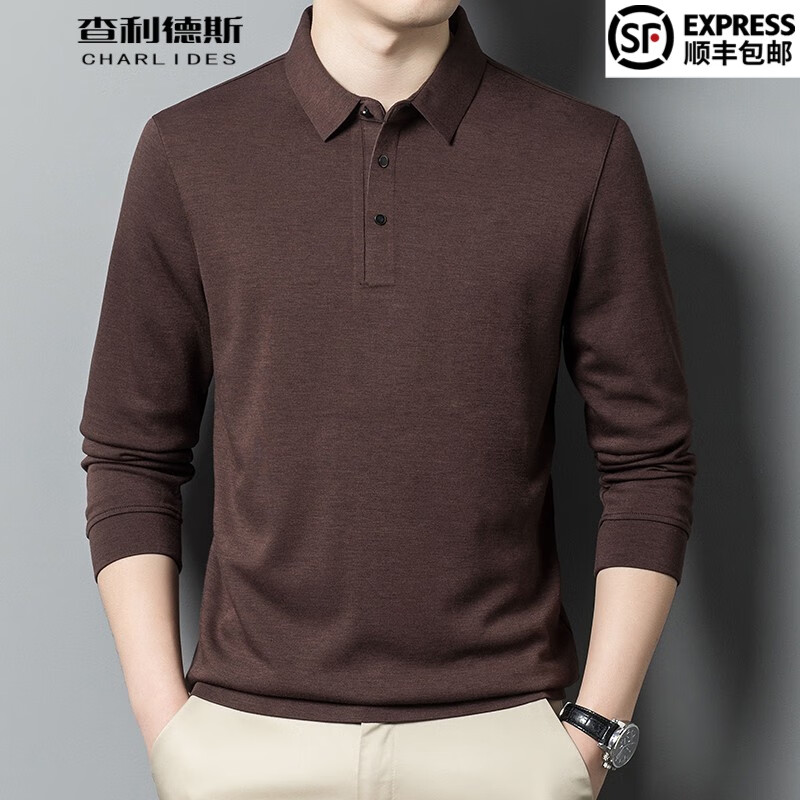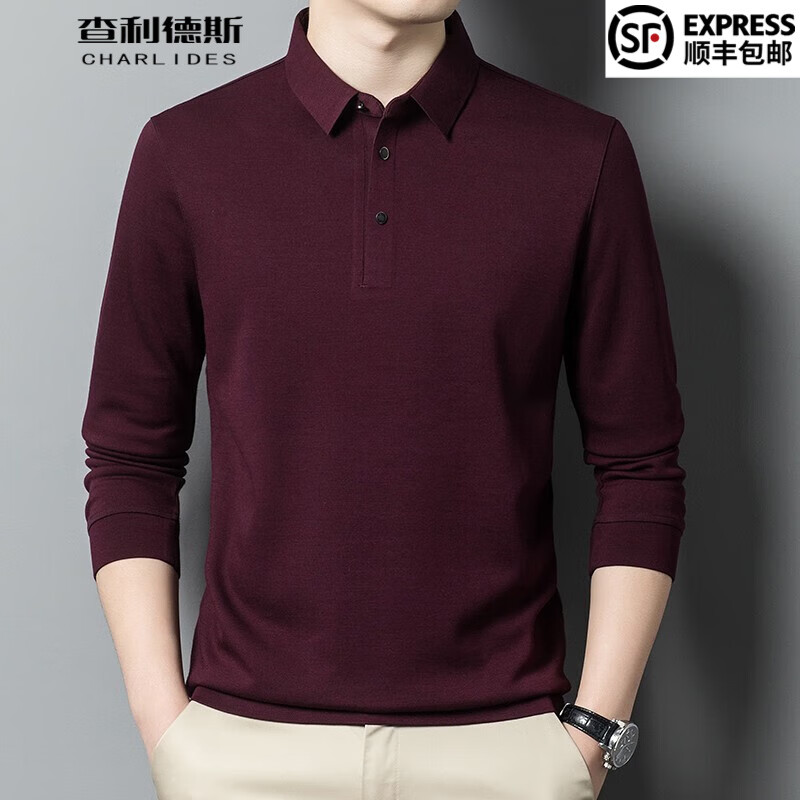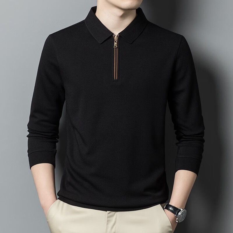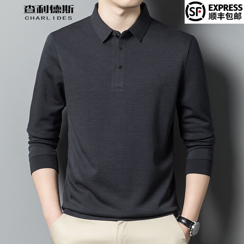查利德斯贵族品牌长袖polo男纯色翻领绵羊毛免烫商务休闲百搭打底上衣t恤 2962黑色【轻奢无痕免烫款】 180码/XXL