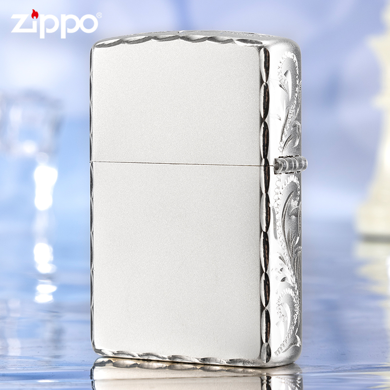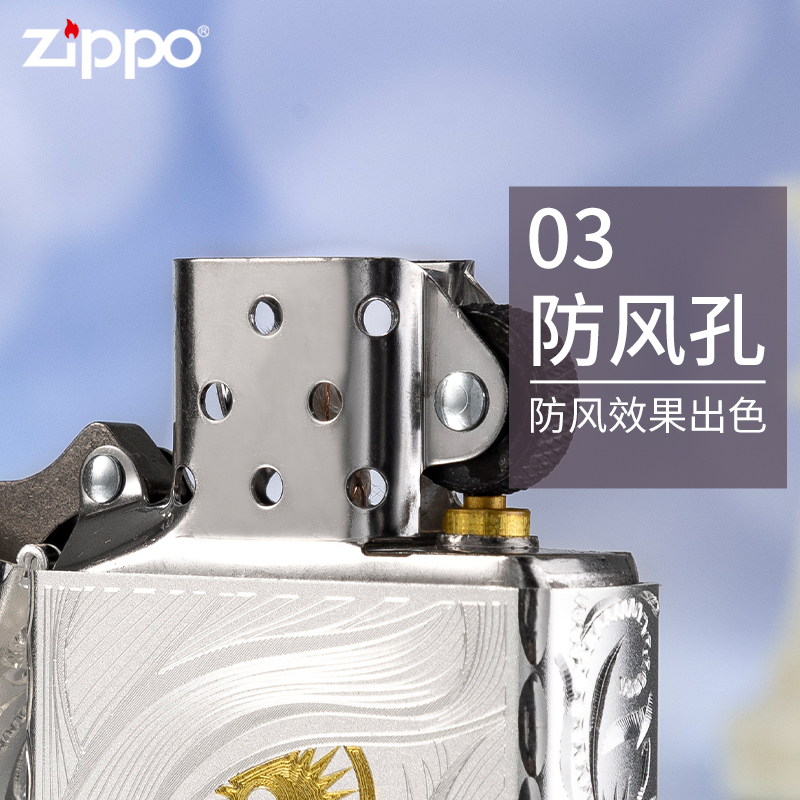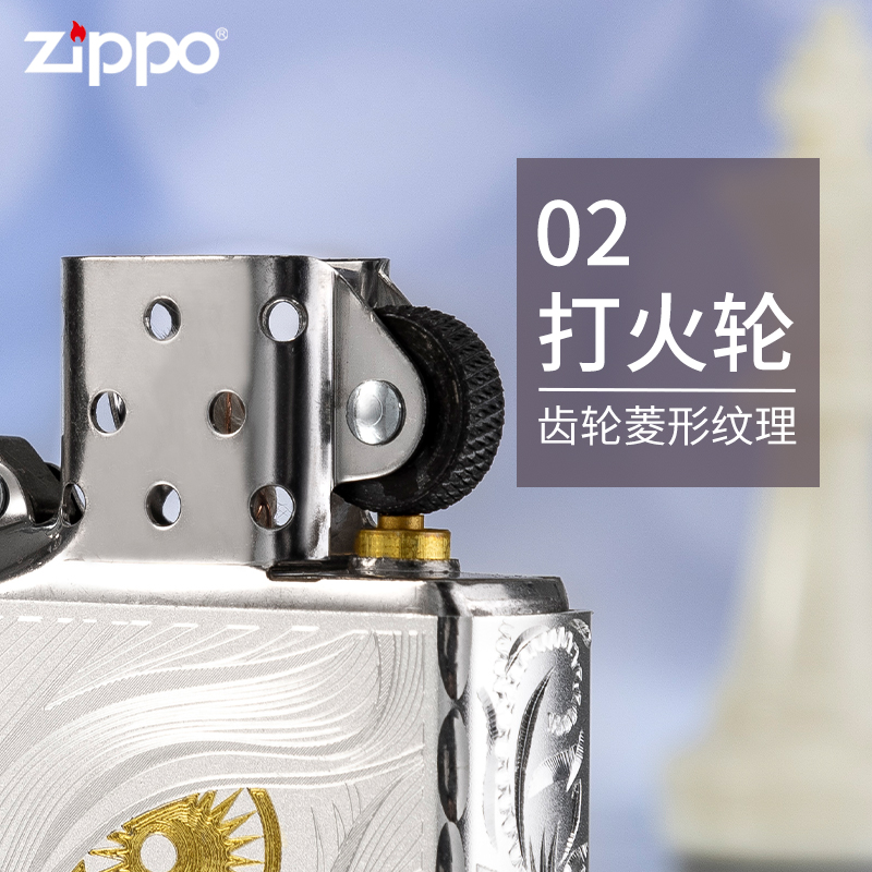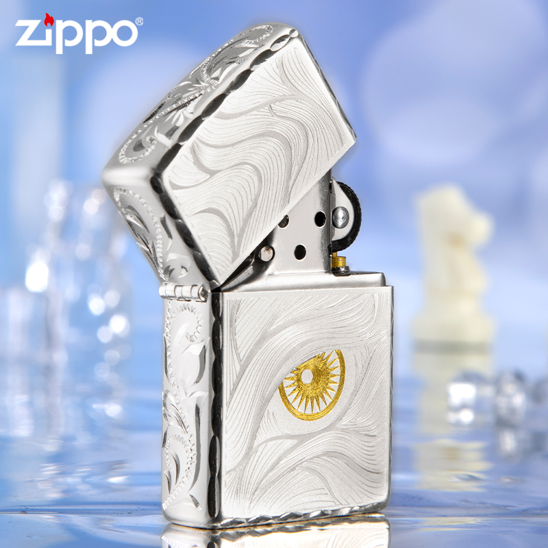 ZIPPO打火机秋水含睛防风煤油打火机正版送男友打火机高颜值打火器 凿边工艺单机