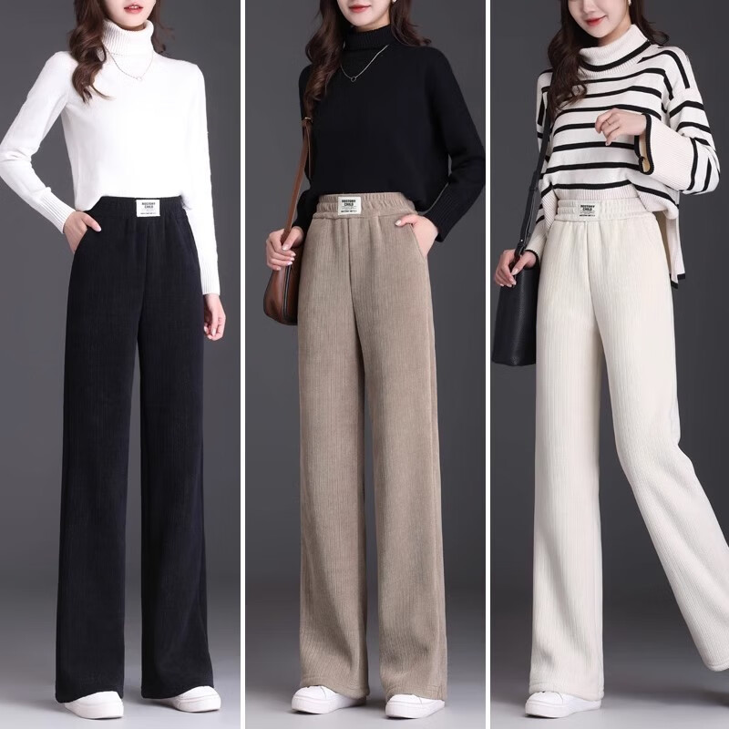 简蜓休闲裤女2024冬季新款加绒加厚雪尼尔阔腿裤女士直筒羊羔绒女裤秋 黑色【特厚羊羔绒北方过冬】 XL(120-130斤左右)