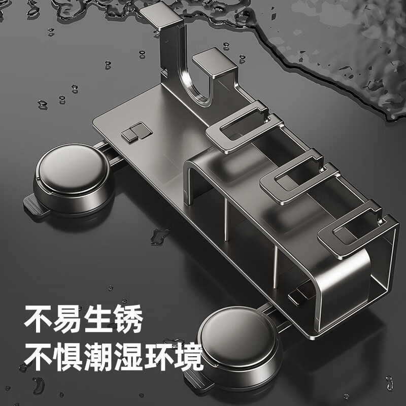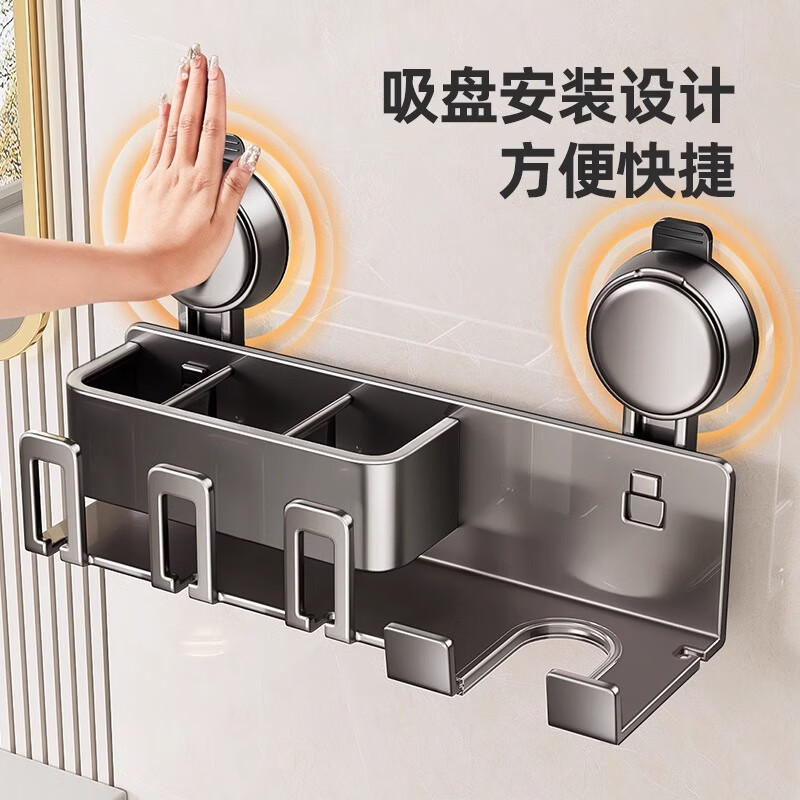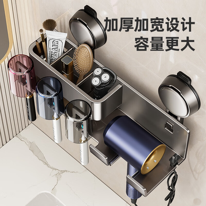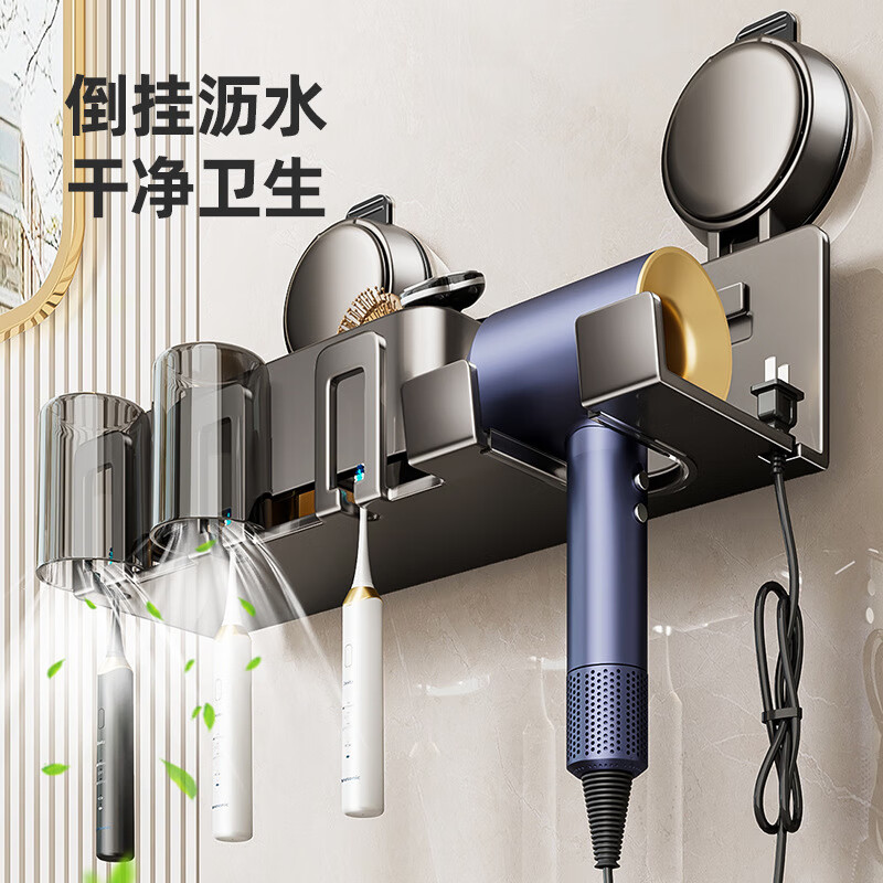 慕质吸盘牙刷置物架电动牙刷架免打孔卫生间壁挂漱口杯吹风机一体架子 吹风机带四人牙刷架(带四杯)
