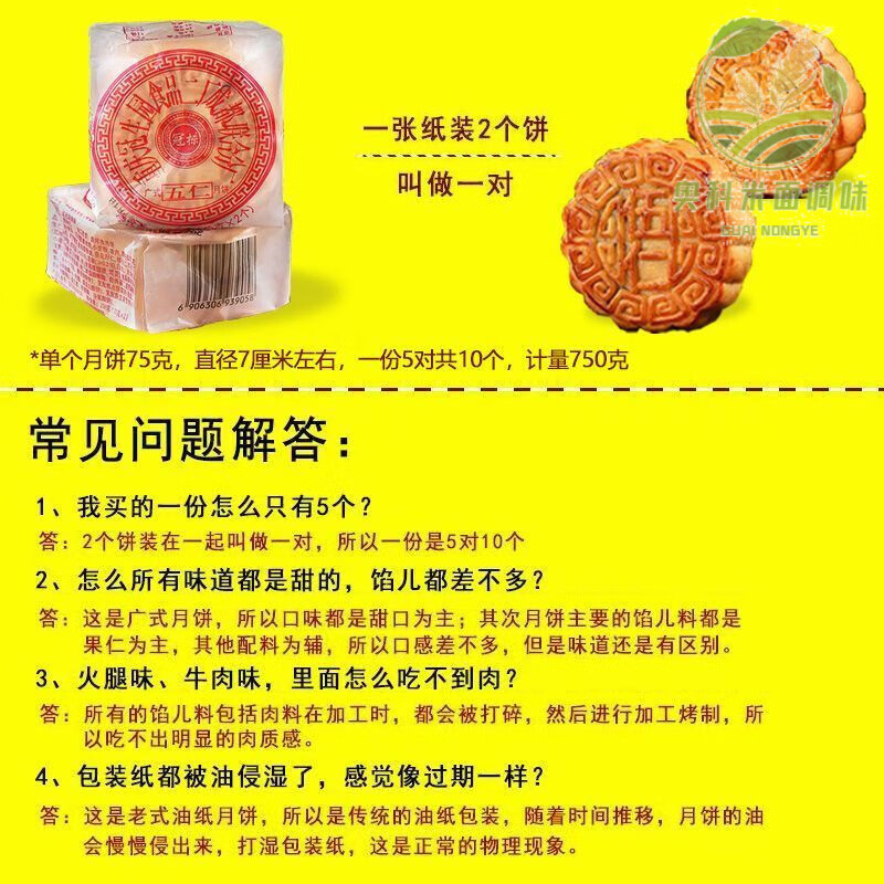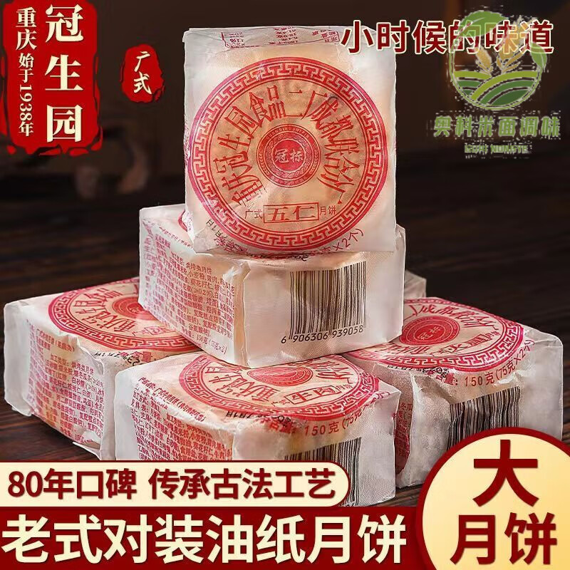 食芳溢重庆冠生园月饼五仁牛肉月饼老式手工传统糕点油纸装150g 5封10个 五仁月饼