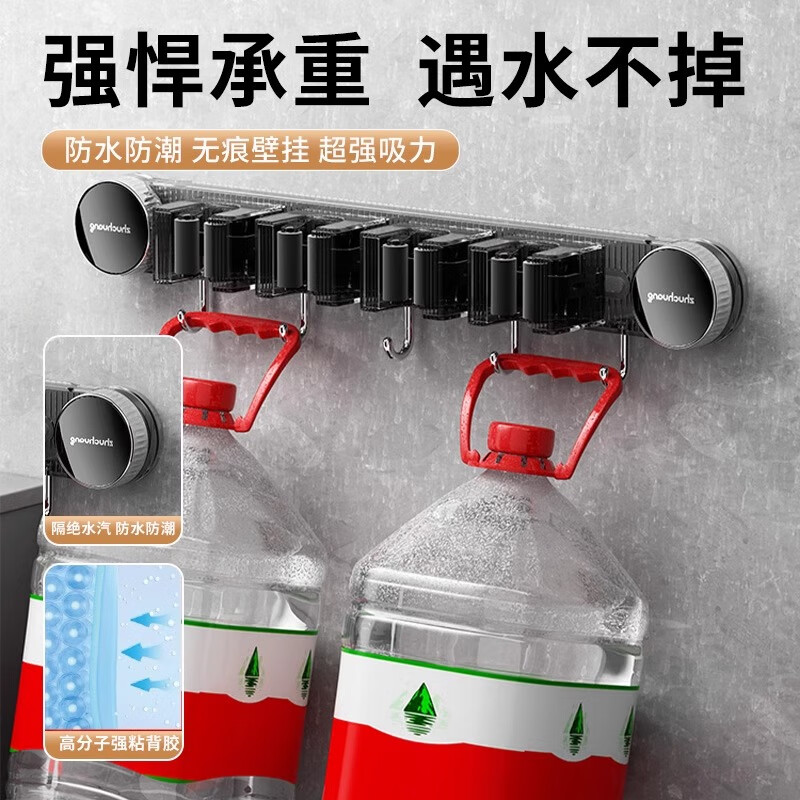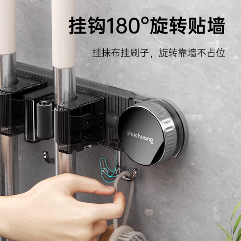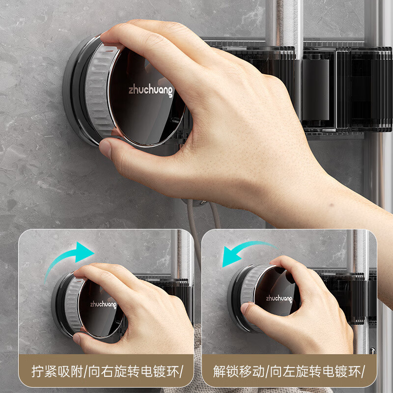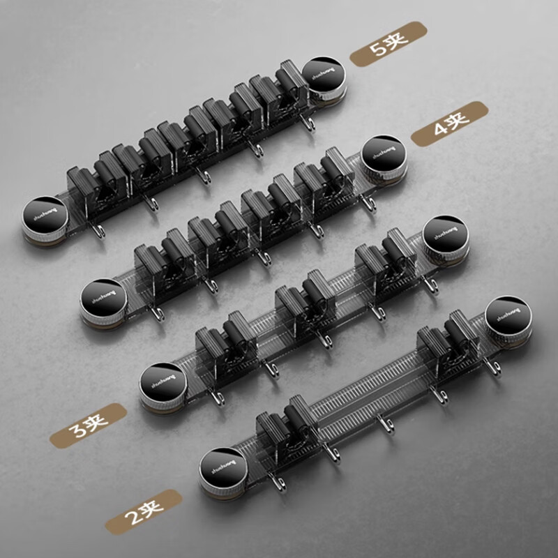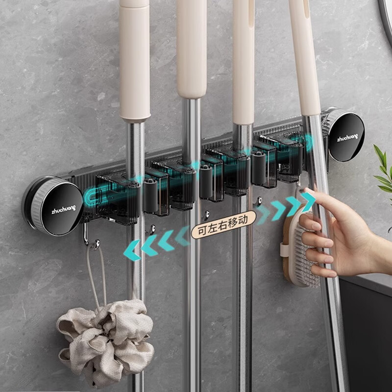 慕质吸盘拖把壁挂夹浴室门后免打孔挂扫把拖布挂钩固定置物架收纳神器 透明4夹(夹位可移动)
