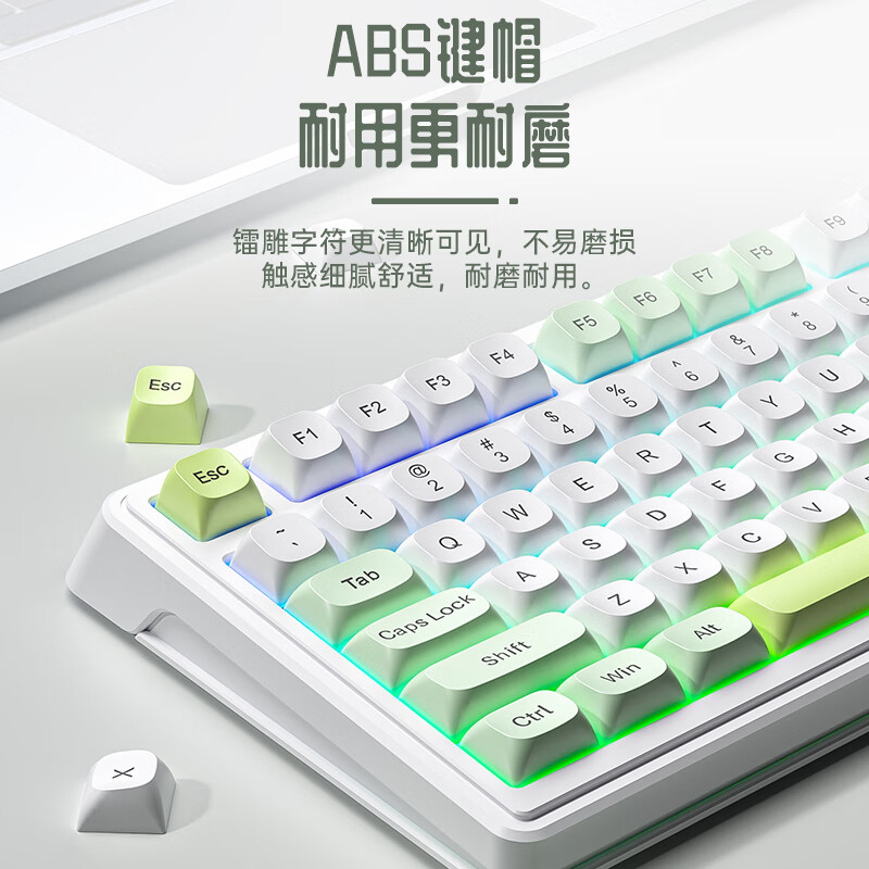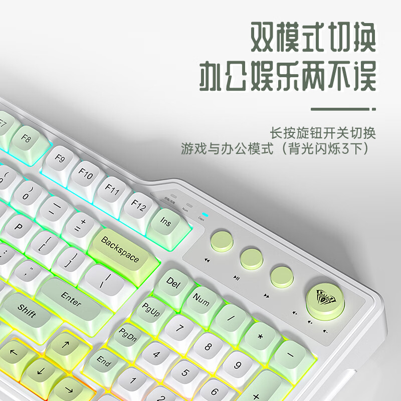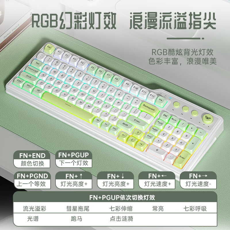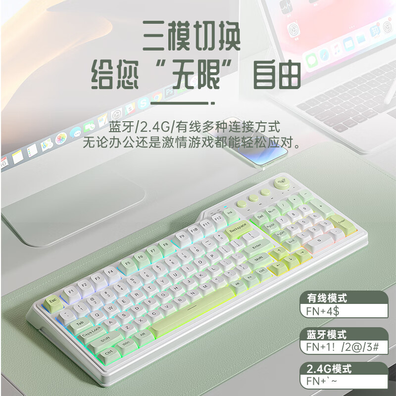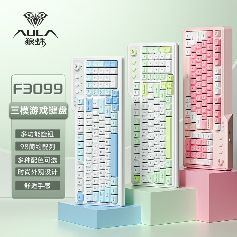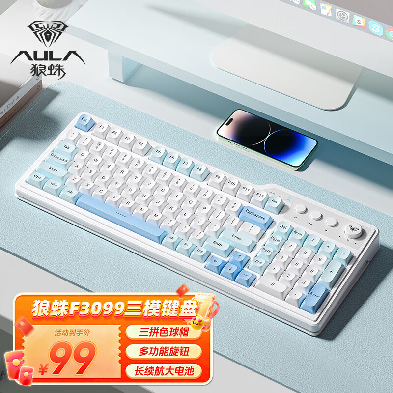 狼蛛(AULA)F3099有线/2.4G无线蓝牙三模键盘机械手感RGB背光拼色键鼠套装mac笔记本台式机电脑游戏办公键盘 星海蓝【三模】 RGB
