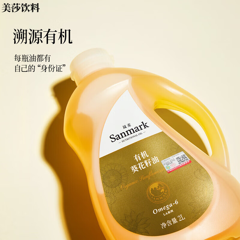 食芳溢【晟麦有机葵花籽油2L】热炒家庭食用油冷榨一级子压榨 有机葵花籽油2L