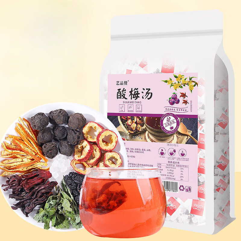 得人如魚(Derenruyu)夏季免煮老北京原料包商用酸梅汤冷泡水果茶酸梅汤 三角包酸梅汤9g*30包