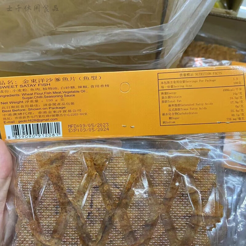 食怀泰国进口geo牌金东洋鱼片 香辣鱼片休闲零食150克即食香辣 金东洋沙爹鱼片五包