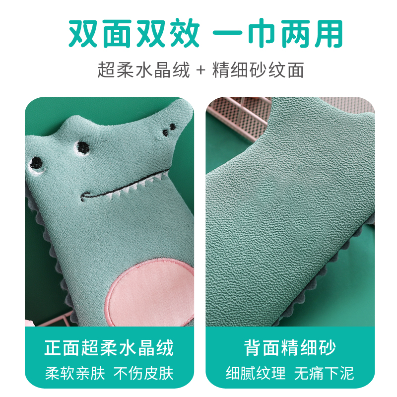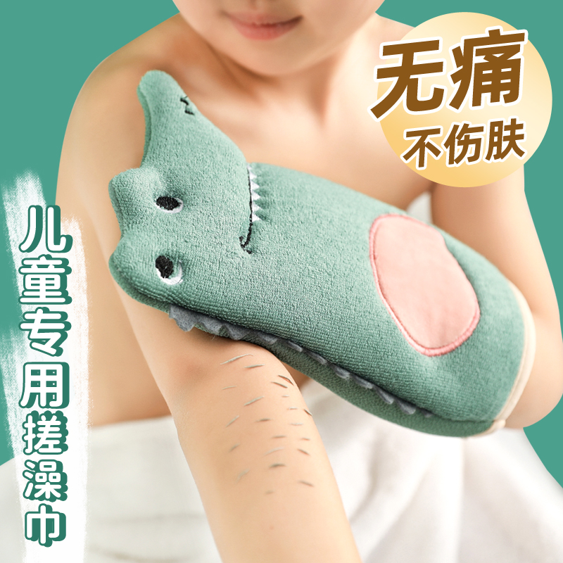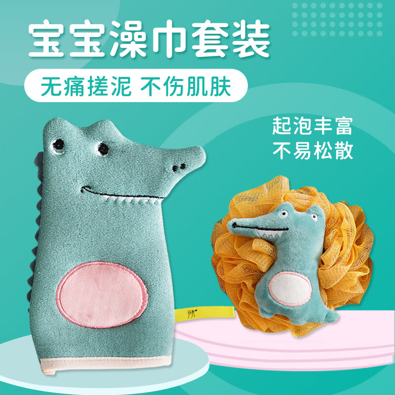 尹秀小孩专用宝宝洗澡巾套装儿童不伤皮肤卡通浴球浴花不散无痛搓泥 【2件套】绿色澡巾+鳄鱼浴花