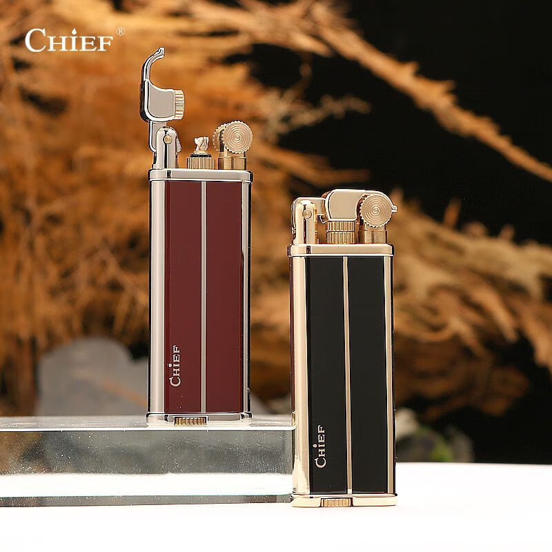 首领煤油打火机复古小巧便携个性创意皮质老式砂轮男士生日礼物 镍红 礼盒装 豪华(佐罗133ml油火石棉芯)