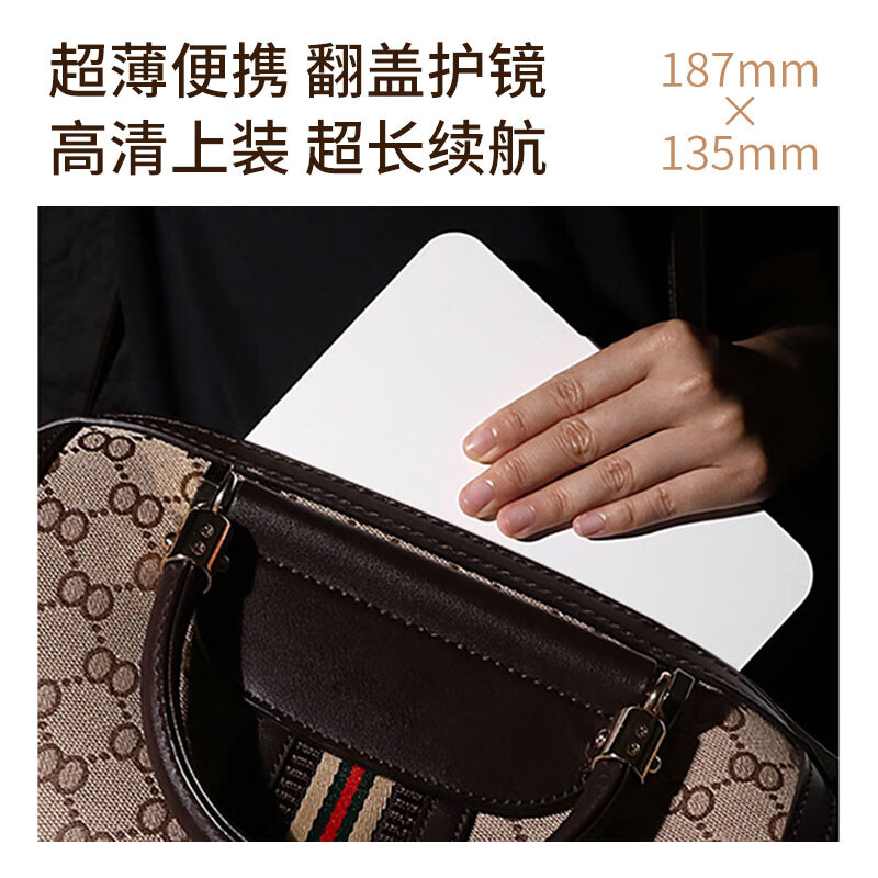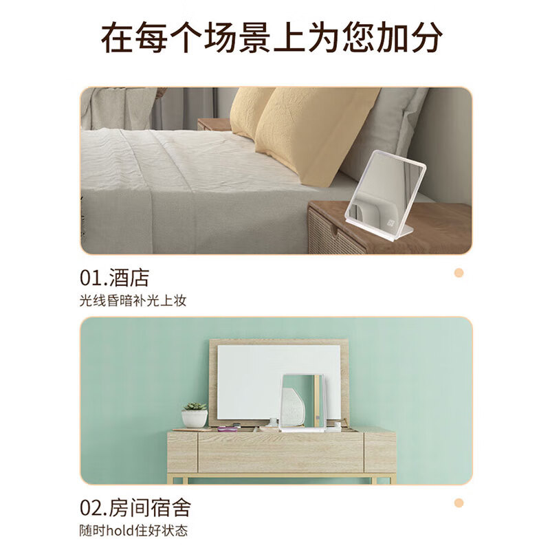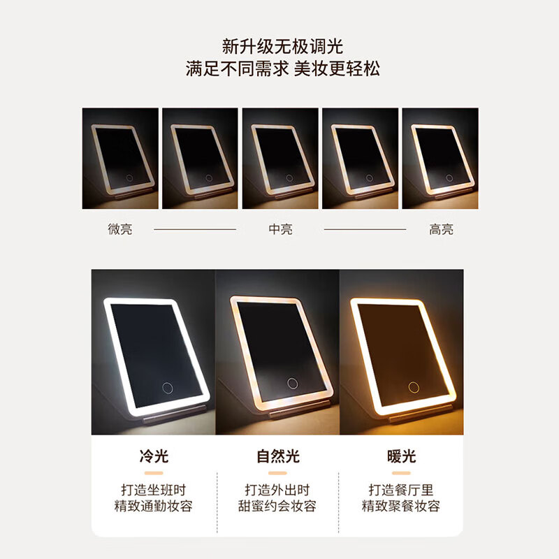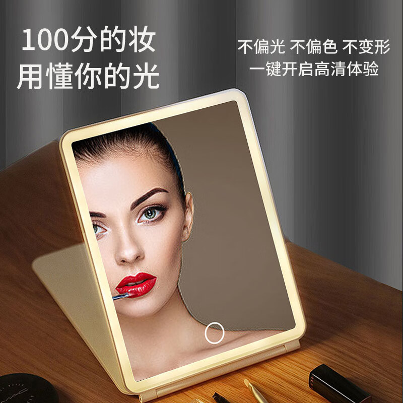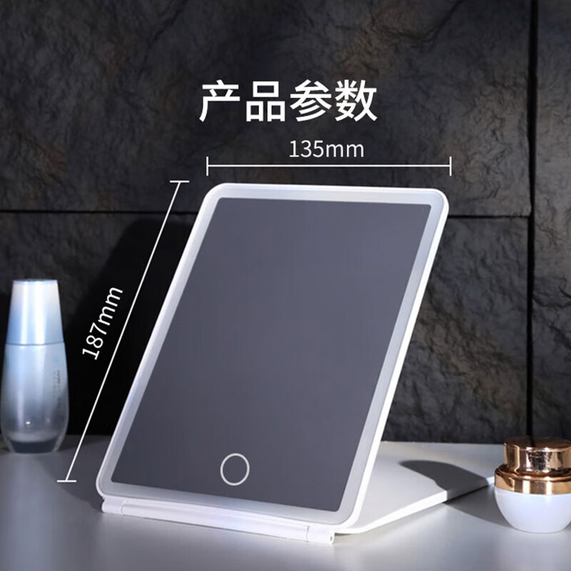 米波迪(Meebordi)化妆镜LED带灯美妆折叠镜子三色补光超薄卧室办公室宿舍桌面便携送女朋友闺蜜实用节日礼物 云朵白