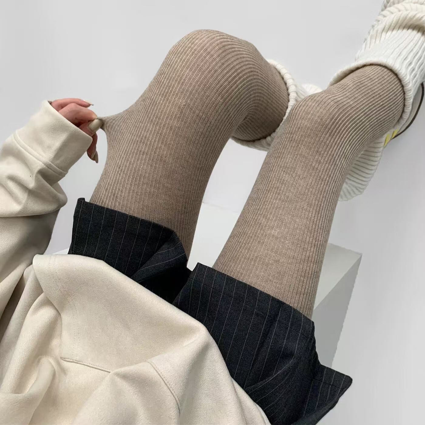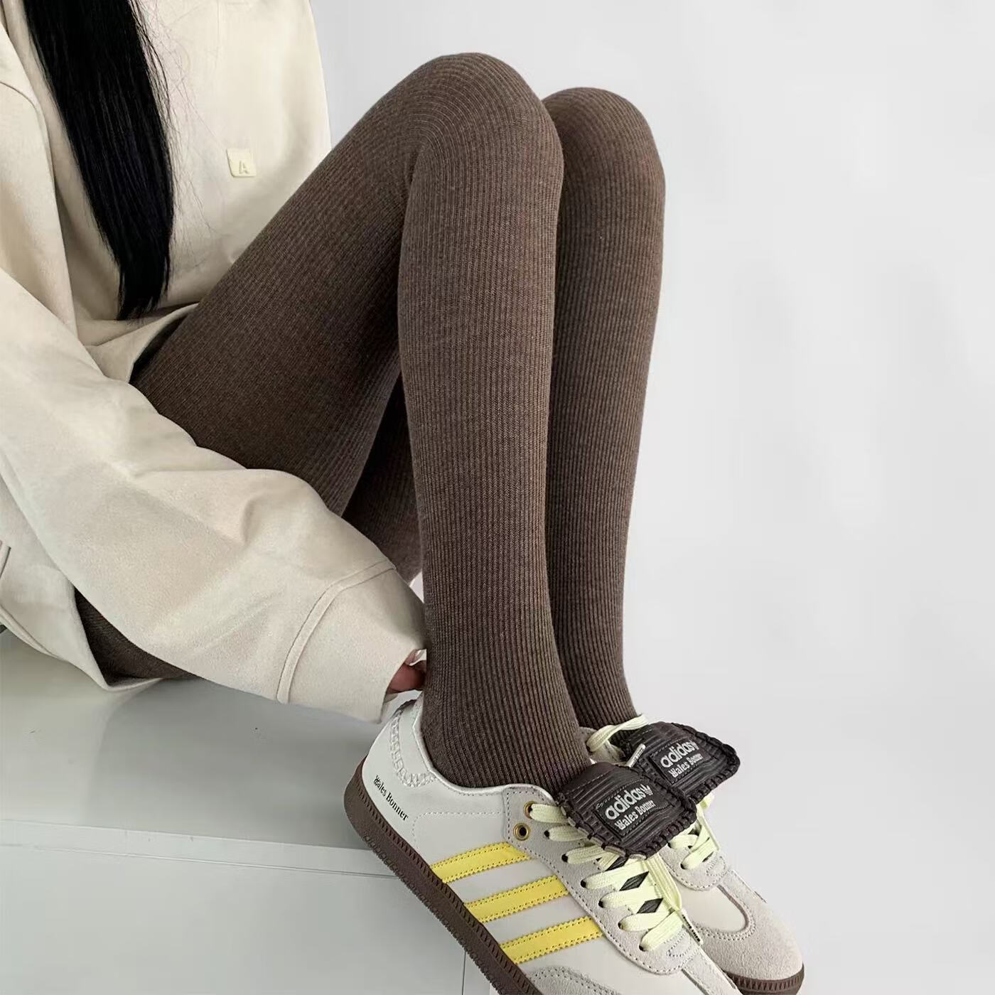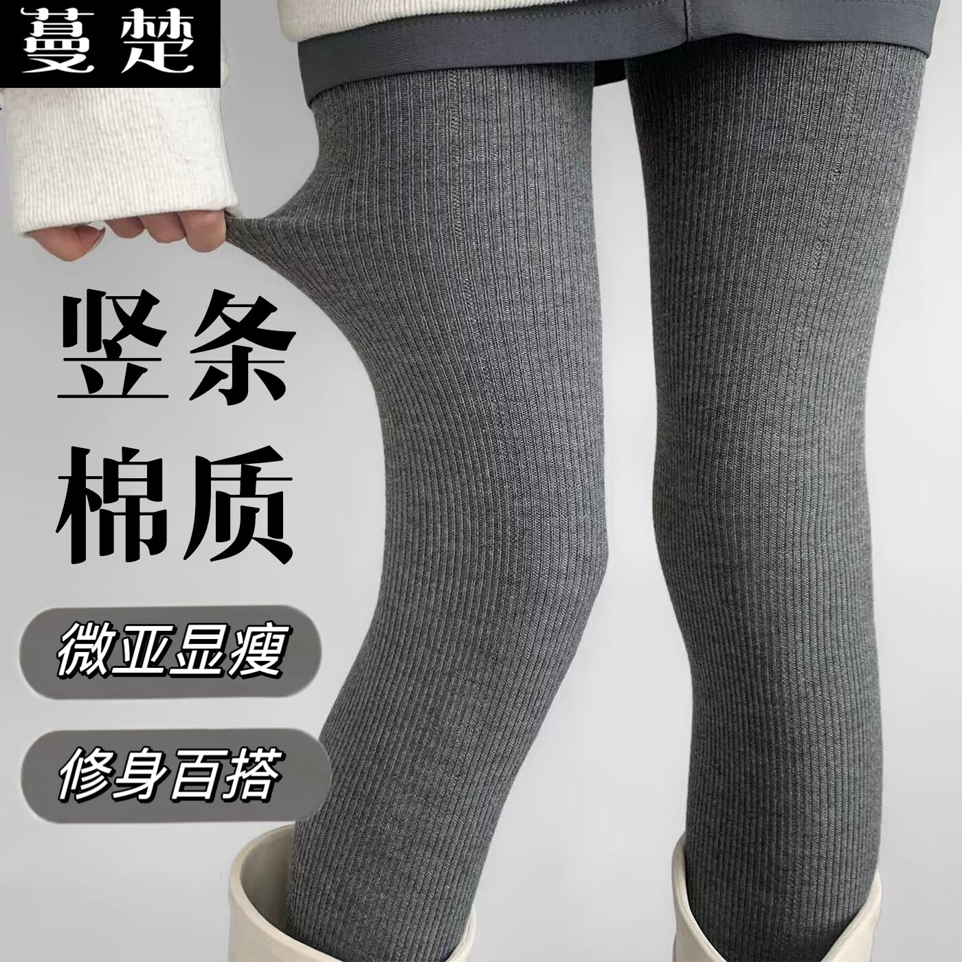 蔓楚打底裤女外穿秋冬光腿神器竖条棉质加绒加厚显瘦腿一体连裤踩脚袜 黑色连脚打底裤袜 230克加绒女 1条