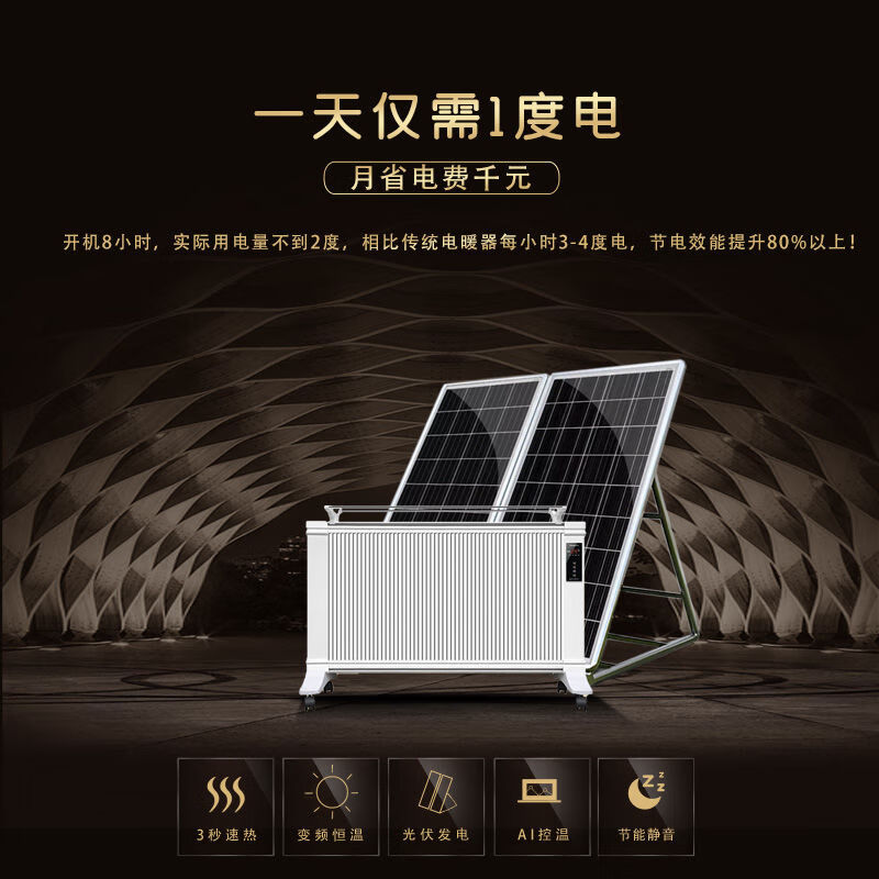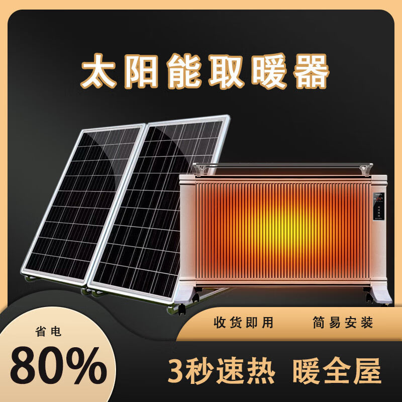 OQB太阳能取暖器+太阳能板家用农村取暖神器变频节能省电大面积全屋 30平米内双太阳能发电板+取暖器 双电互补 白天节电80% 夜间插电