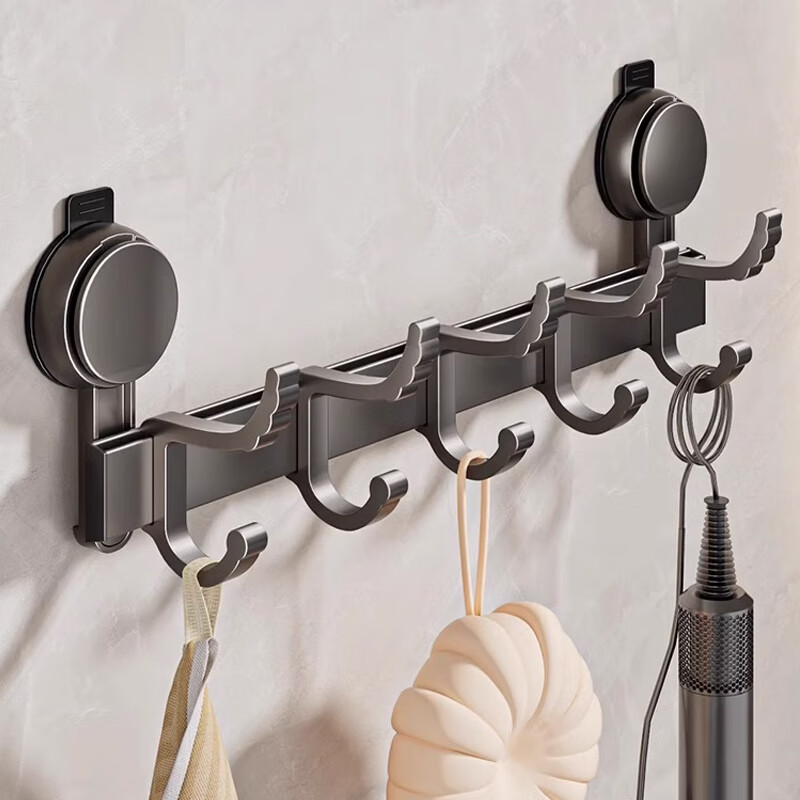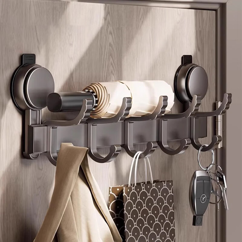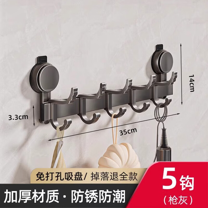 慕质吸盘门后挂钩强力粘胶免打孔强力承重置物架钩子入户门挂衣架收纳 【枪灰】上下双钩5钩