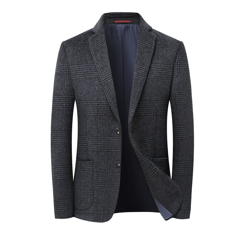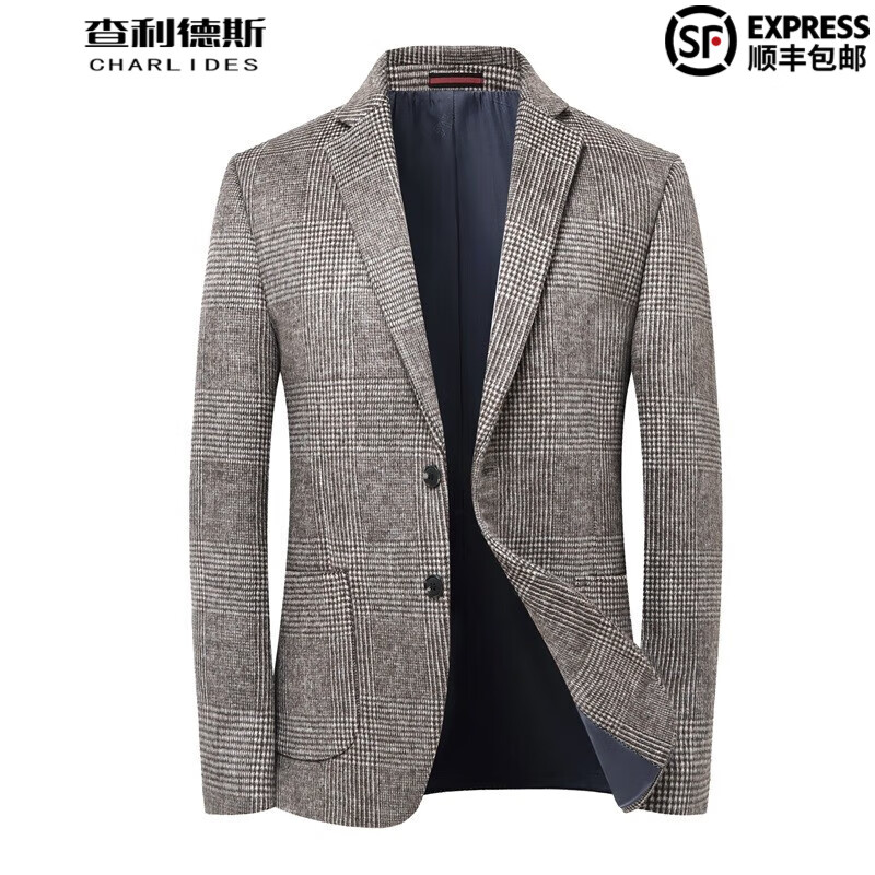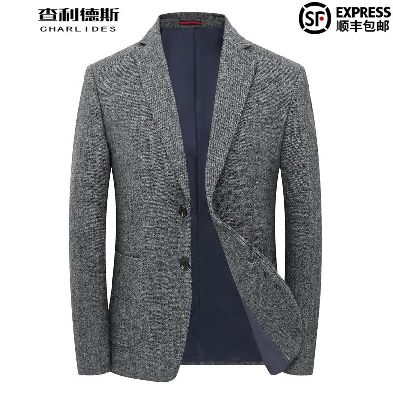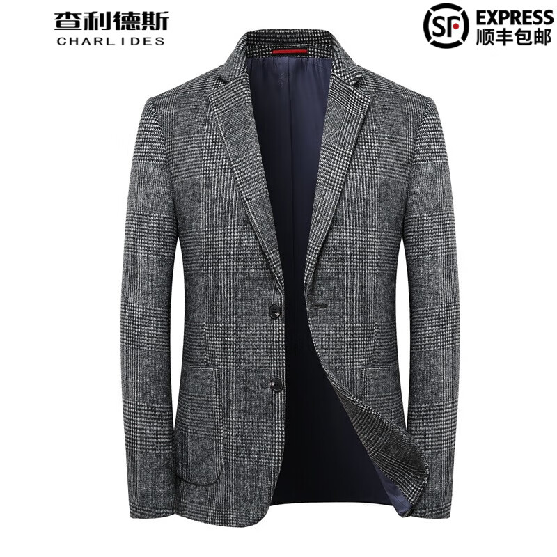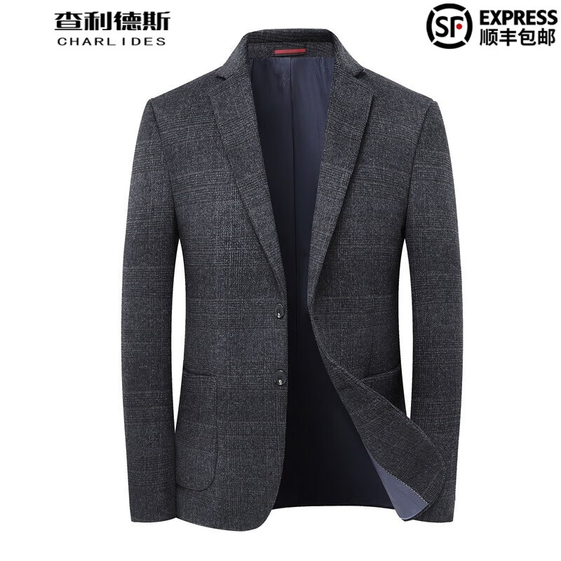查利德斯轻奢贵族绵羊毛西服男秋冬厚款保暖舒适商务休闲免烫小西装外套男 BF-211蓝色 175码【建议125-145斤】