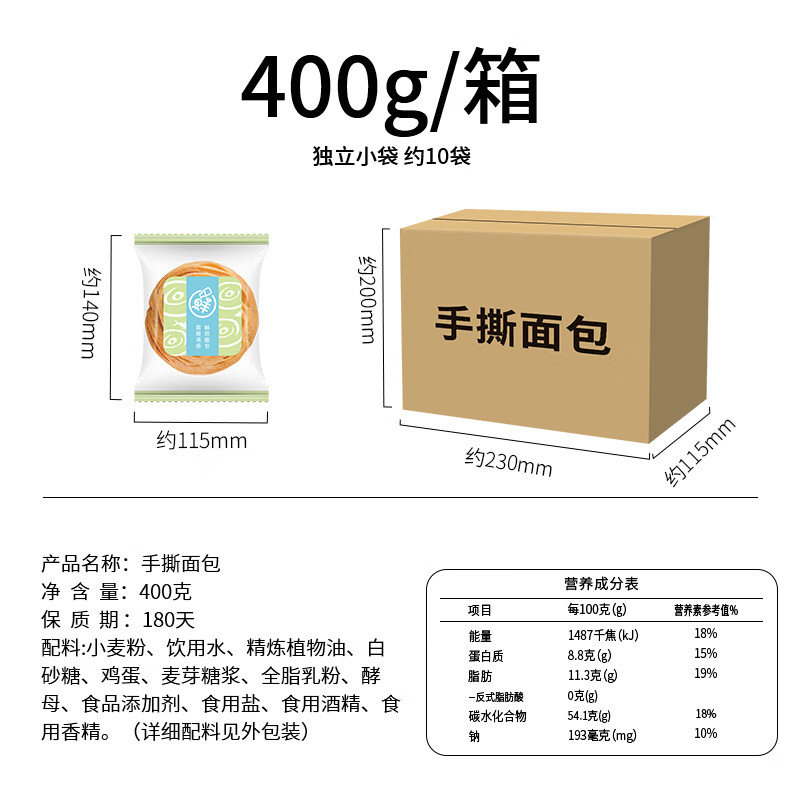 惠寻黑芝麻无蔗糖健身代餐轻食饱腹 贝果 手撕面包 400g 1份