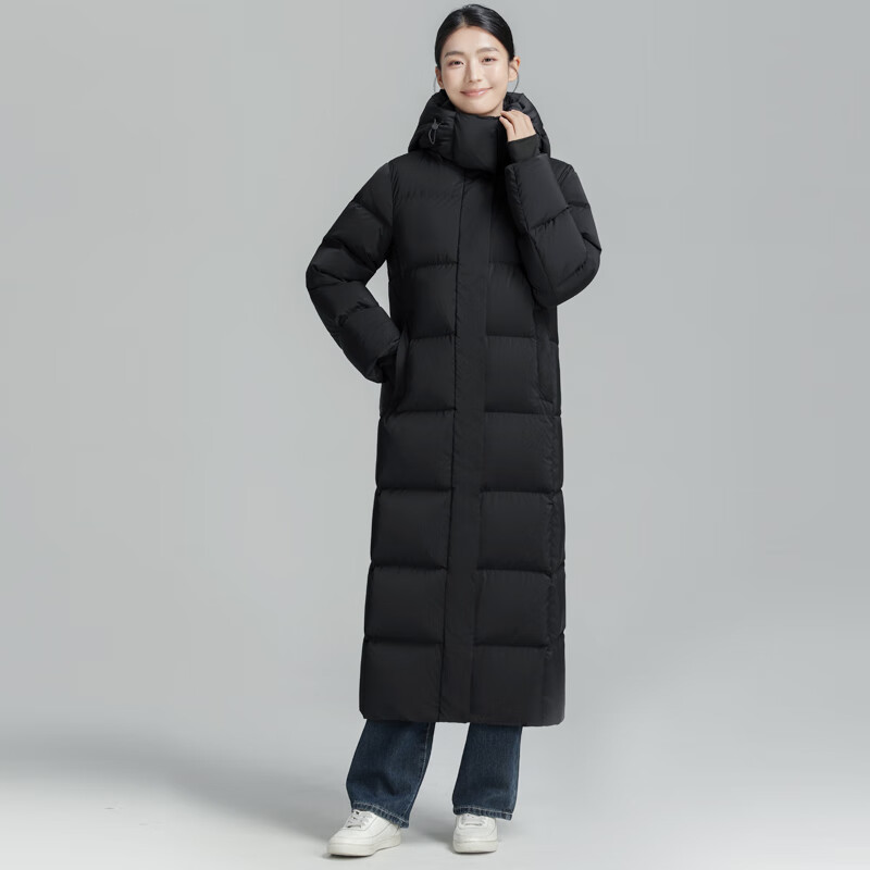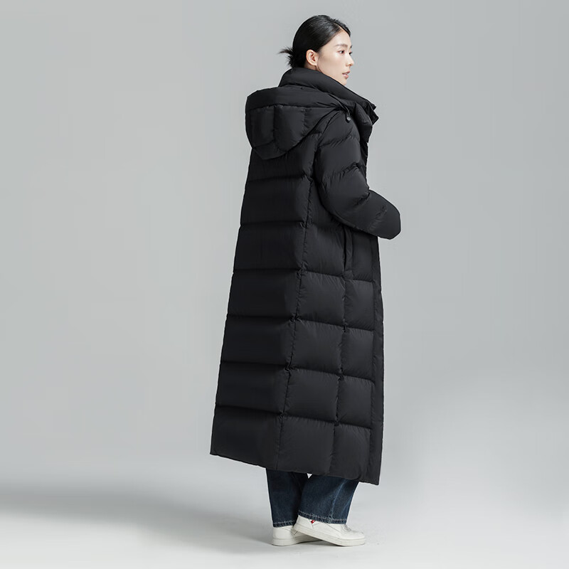 BOBBY BIZZ羽绒服女中长款2024冬季新款大码过膝加厚95%白鹅绒保暖女士外套 黑色【不跑绒不钻绒】 M 【115-130斤左右】白鹅绒363g