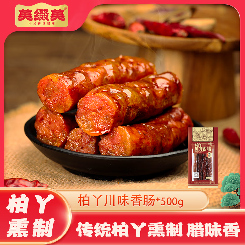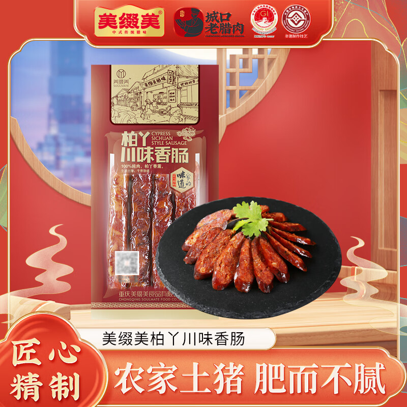 美缀美 重庆城口老腊肠柏树丫熏制农家猪川味香肠四川特产农家特产腊肠 500g 城口香肠【精选后腿肉】