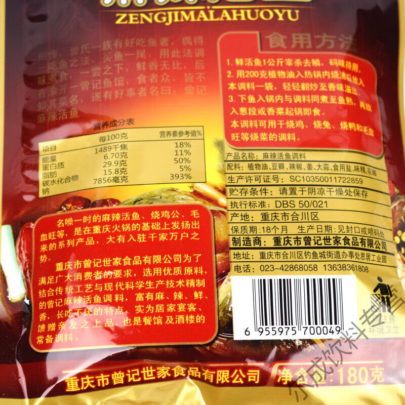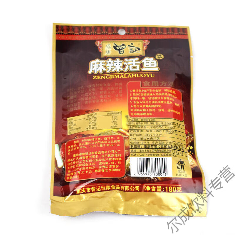 食怀曾记麻辣活鱼调料180g*3/5袋 重庆特产鱼火锅料 四川麻辣鱼作料 曾记麻辣活鱼180g*5袋