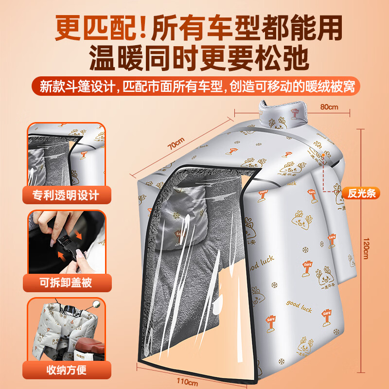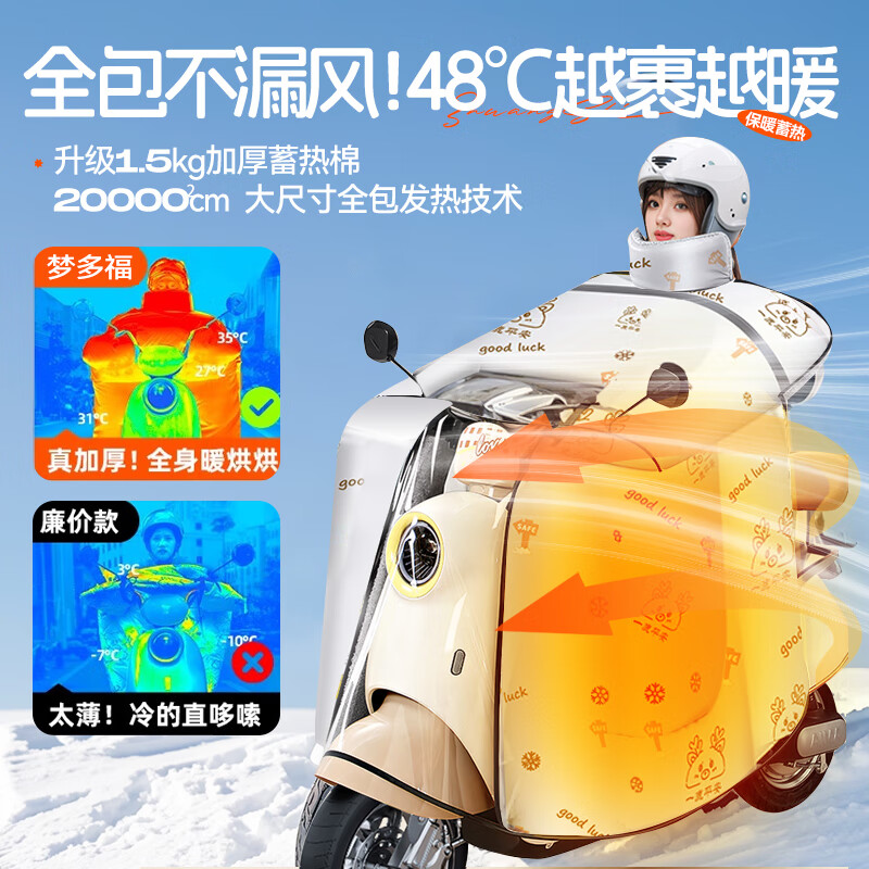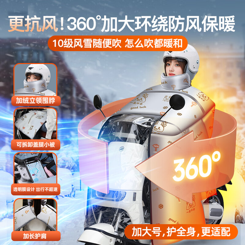 OQB德国电动车挡风被冬款加厚防水2024年新款斗篷式加绒护腿防寒电瓶 【2024全新斗篷款】挡风锁温母婴适用宝宝放心用 加绒加厚大侧翼+可拆护肩+围脖+收纳扣